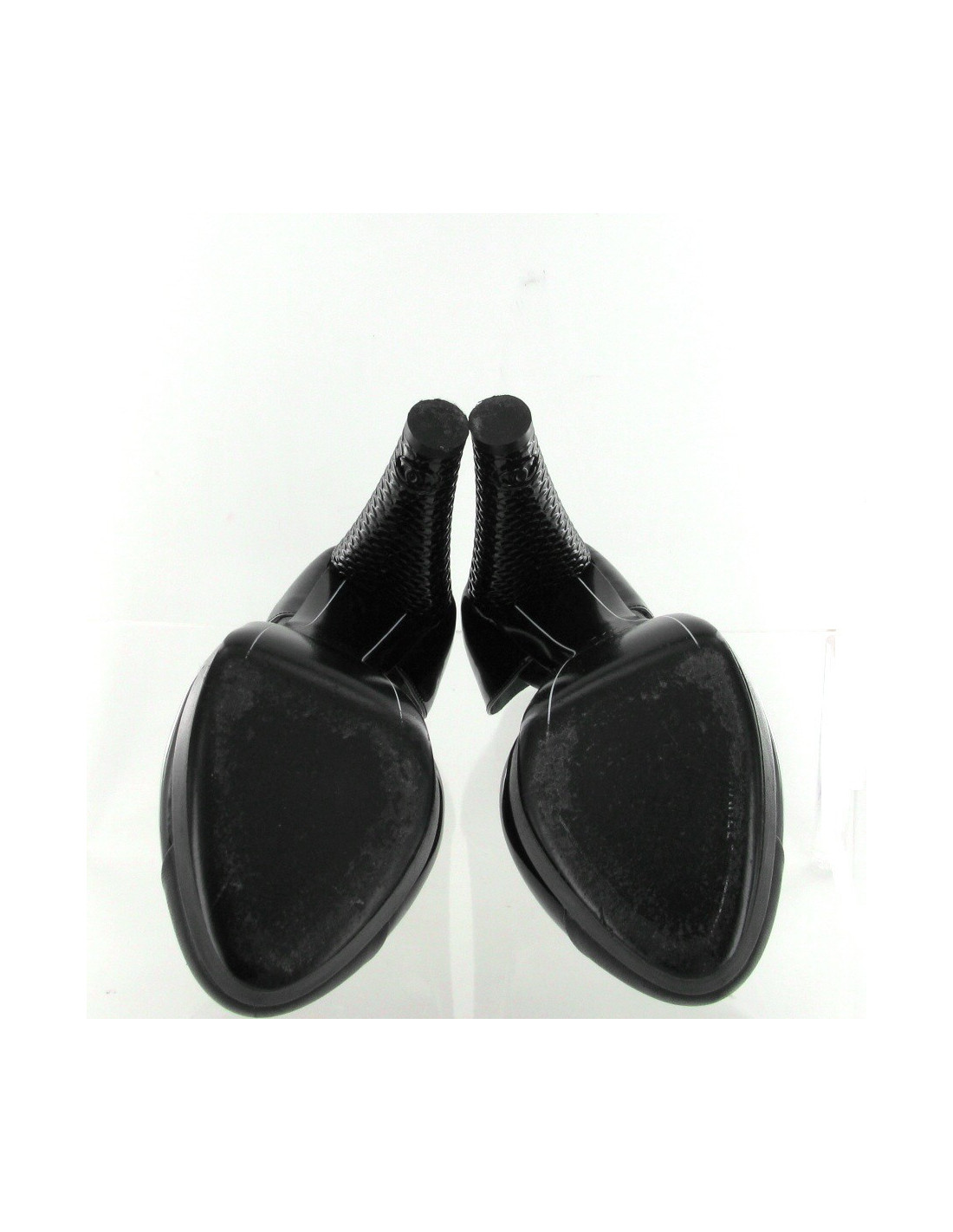 Beautiful shoes CHANEL, 37.5 varnish black leather, with a special feature, the end is in Matt black leather. There's a platform at the front in black leather. The heel is hammered in form of "scales" patent leather. The CC acronym is present on the bottom of the heel.