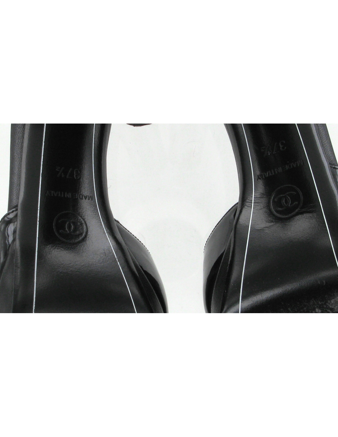Pumps CHANEL T37.5 leather varnish black and smooth leather