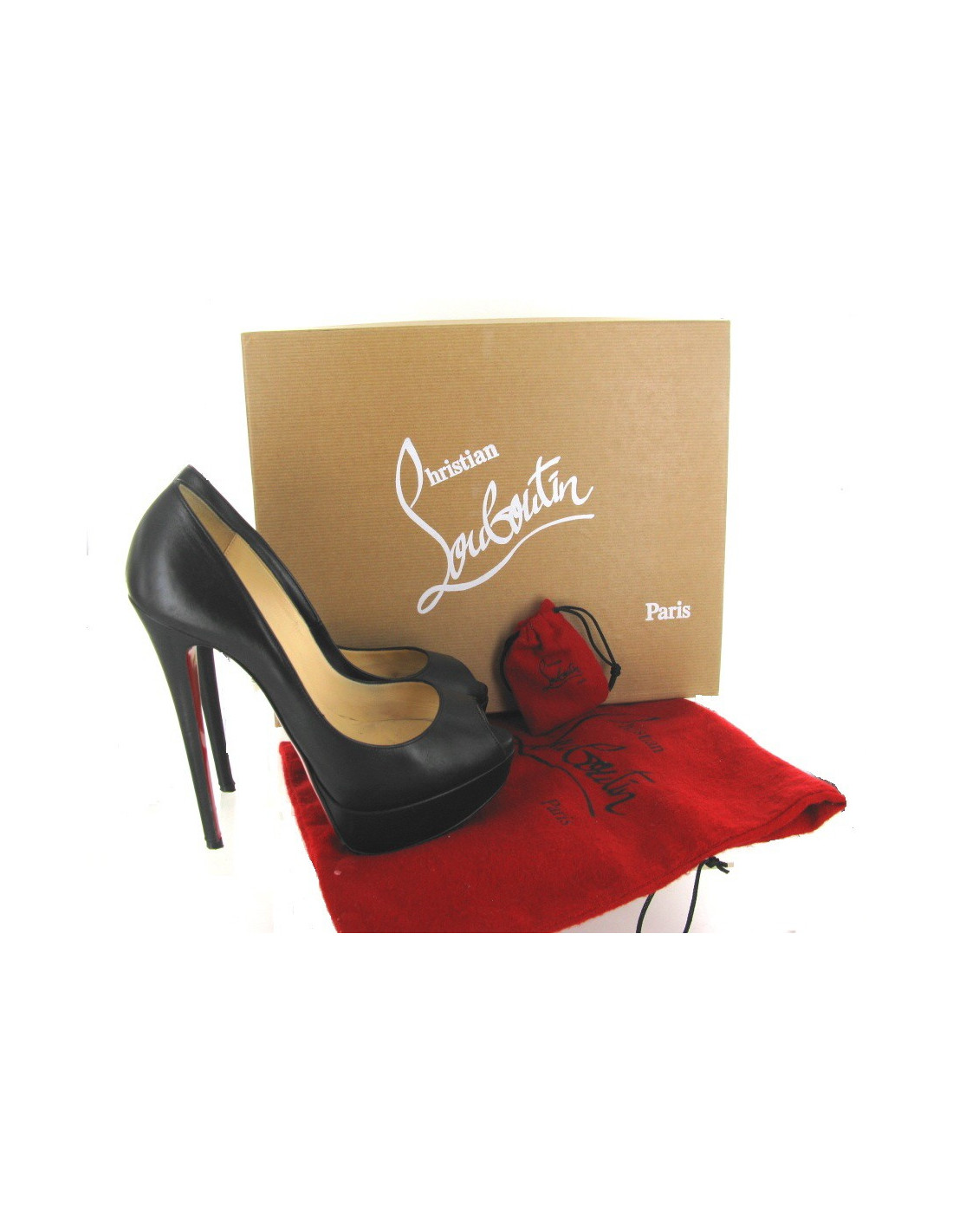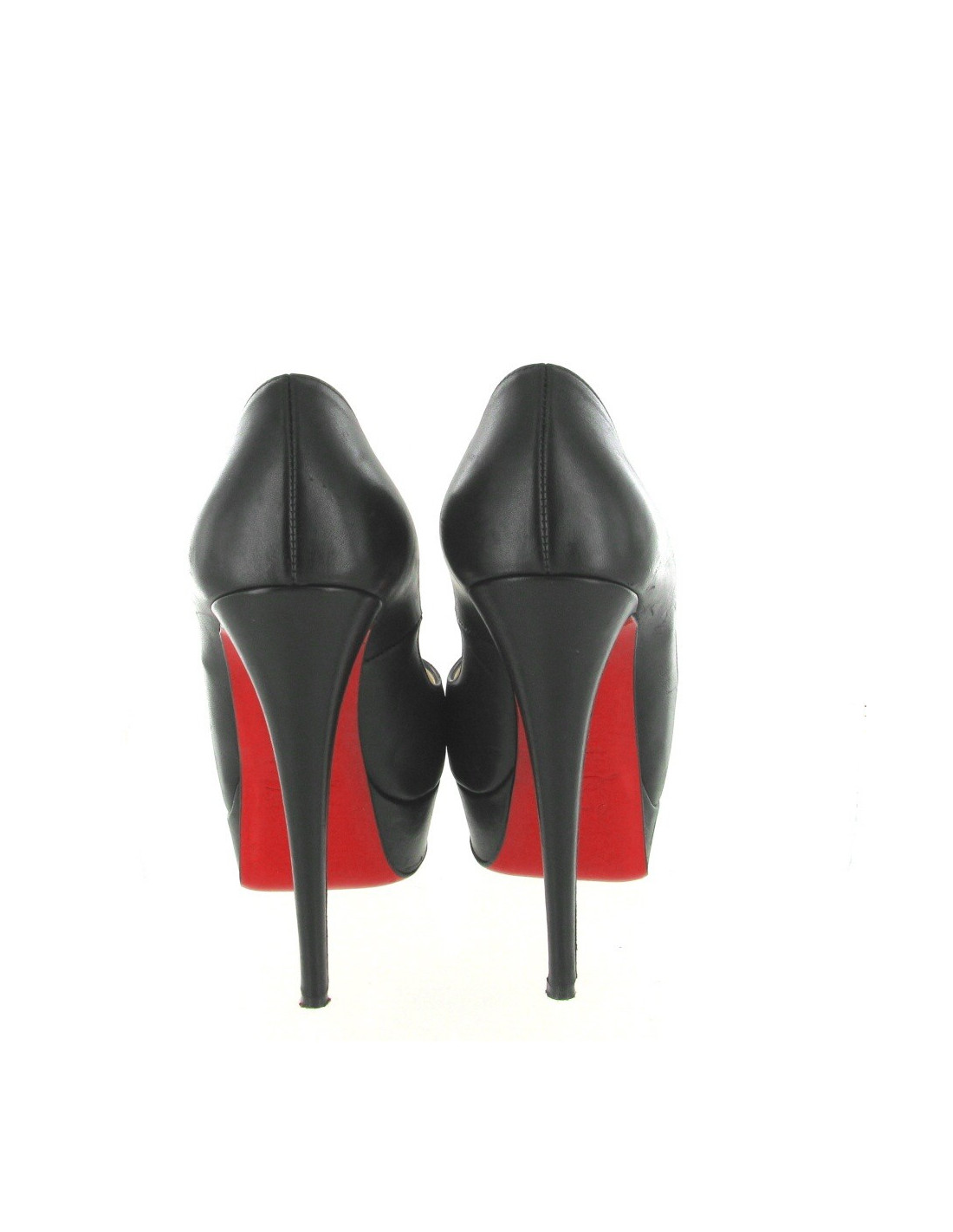 Pumps LOUBOUTIN T37 black leather. The shoe has a platform at the front of the foot and there is an opening on the tip of the foot.
