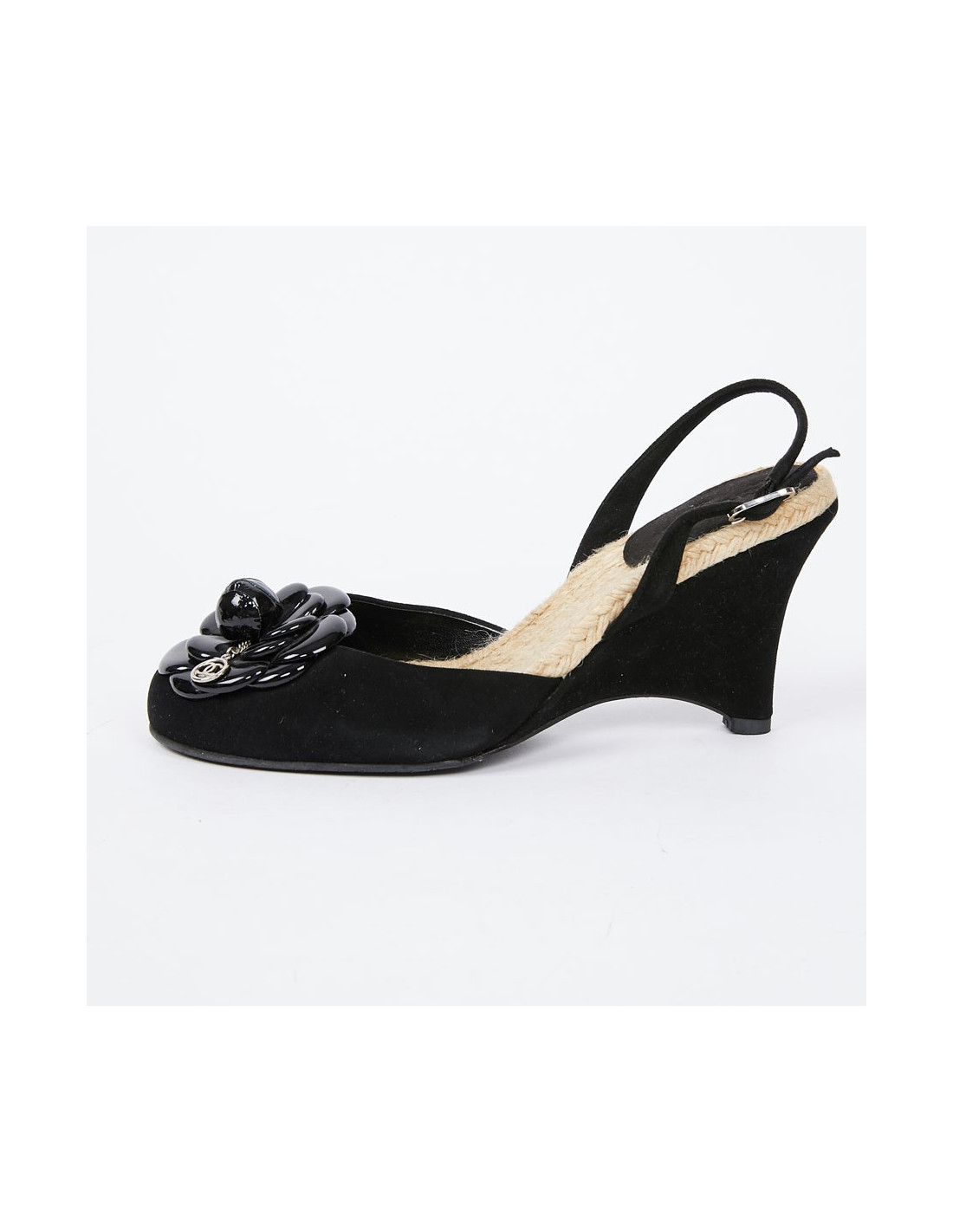 Last items in stock PUMPS - WEDGES CHANEL platform Sandals size 40 two-tone black patent leather and white croco CHANEL 17529 380.00 € Sandals two-tone Chanel Black patent leather and white python size 40. Very good condition (bearings once), despite a few tiny marks on the front of the shoe. The front of the shoe and heel are bound by a pearly white Pearl, the clasp is acronym "CHANEL". Dimensions: 14 cm - 3.7 platform heel cm - width of foot 7.3 cm Supplied with dustbag and box. Add to cart