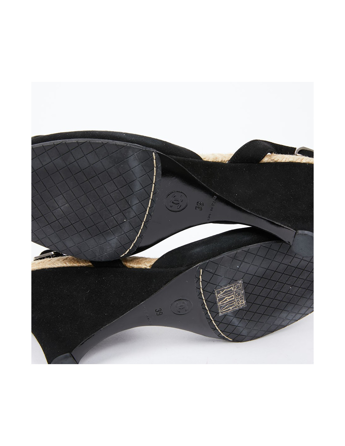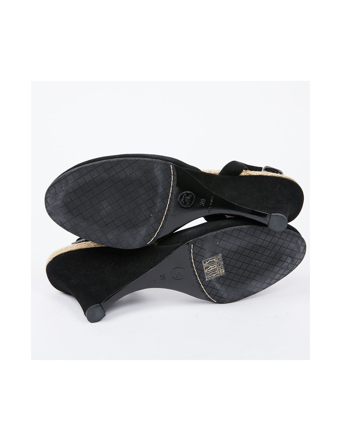 -350.00 € Last items in stock PUMPS - WEDGES CHANEL t 37 in silver python sandals CHANEL 31602 350.00 € 700.00 € Sandals silver scales Python 37 CHANEL; Heel height: 9 cm, heels, inside length of the sole in liege 24 cm, outer width of the footing 7. 5 cm. There is a double "c" on the back of the shoe silver ring and the heel is mix of a big black Mole.They will be delivered in their box Chanel. Add to cart