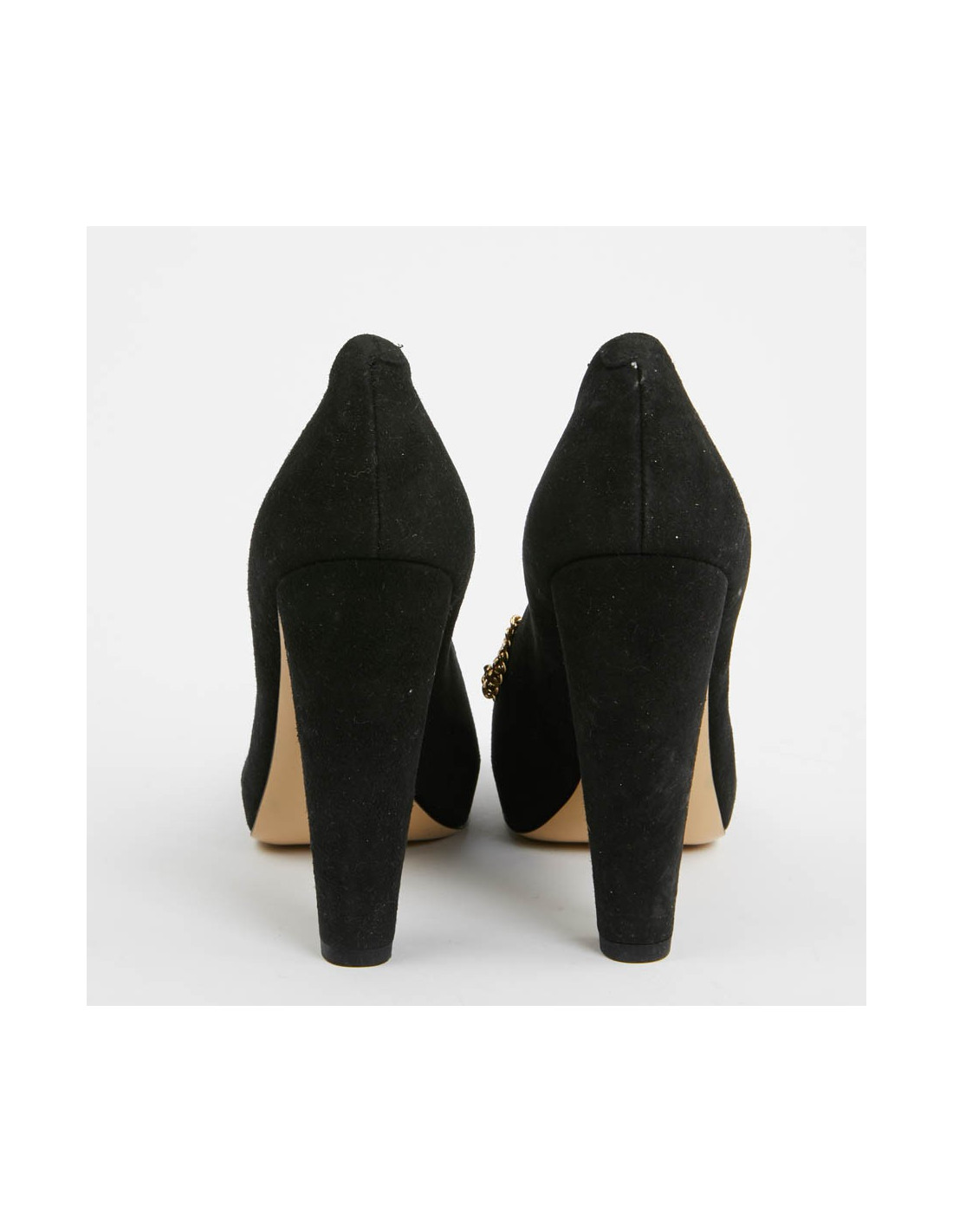 Last items in stock PUMPS - WEDGES Shoes CHANEL T (8.5) 39.5 offset black lamb CHANEL 18563 450.00 € Chanel shoes offset in lamb leather black T 8.5 UK equivalent to a 39.5 FR. In very good condition. the heel height is 8.6 m, the width of the outer sole is 7 cm, the platform height is 1.2 cm. Will be delivered in one box to another. Add to cart