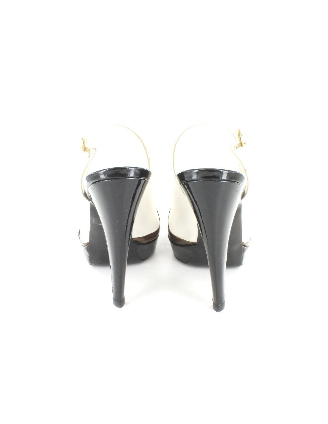 Sandals high YVES SAINT LAURENT Black patent leather, and beige two-tone leather size 37.5.