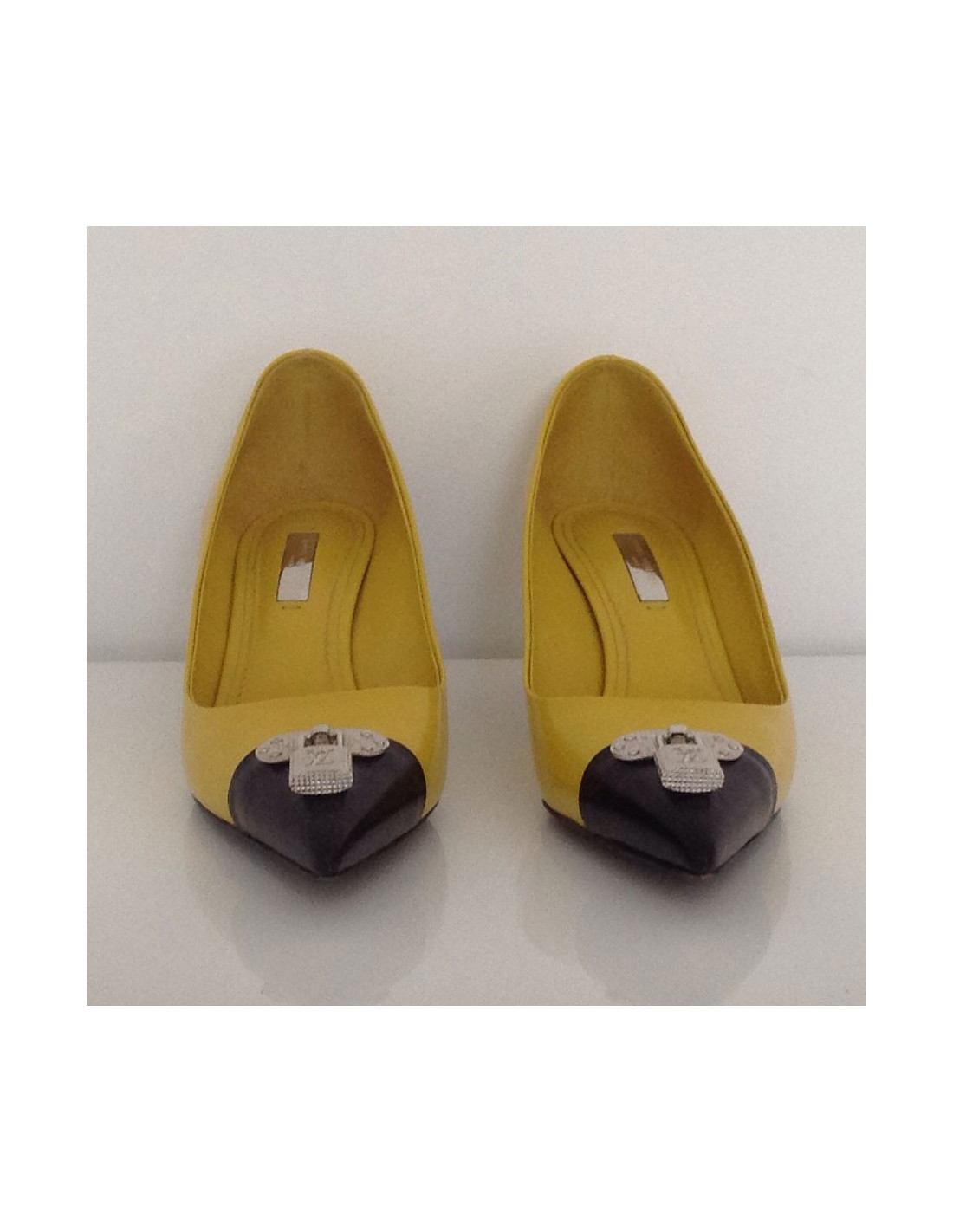 Very elegant Louis Vuitton T38FR, leather shoes yellow color "the color of this summer". En very good condition. The lock is color: Silver initials LV, as well as the heel. The sole is entirely in brown leather. (made in Italy inside ref: SC 0142)