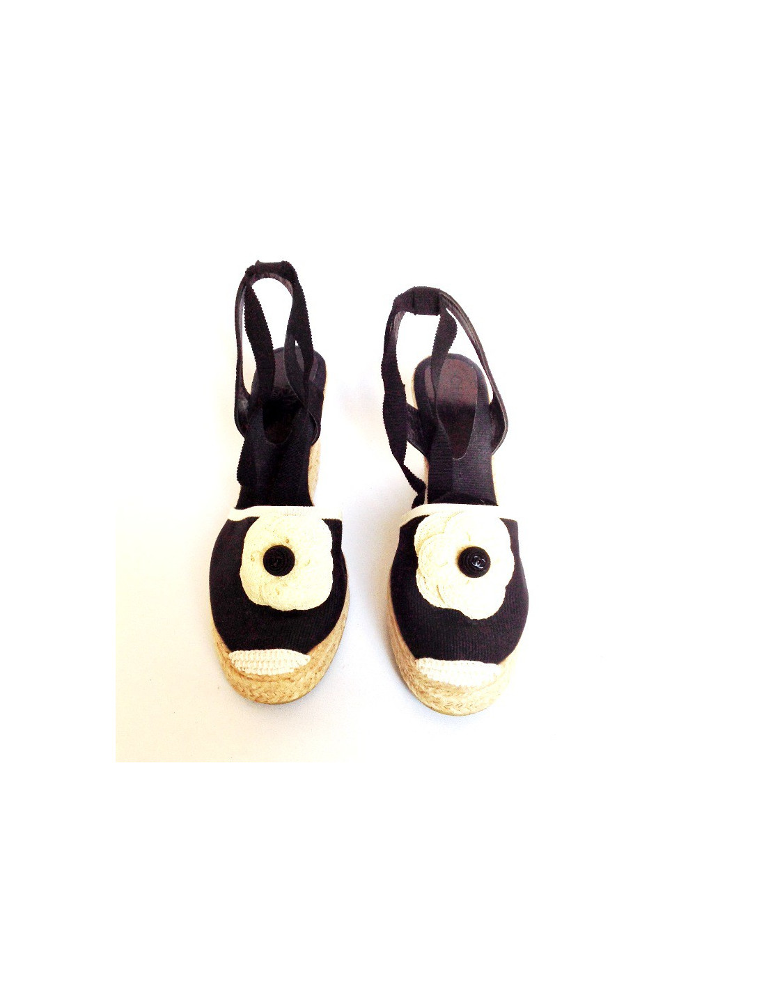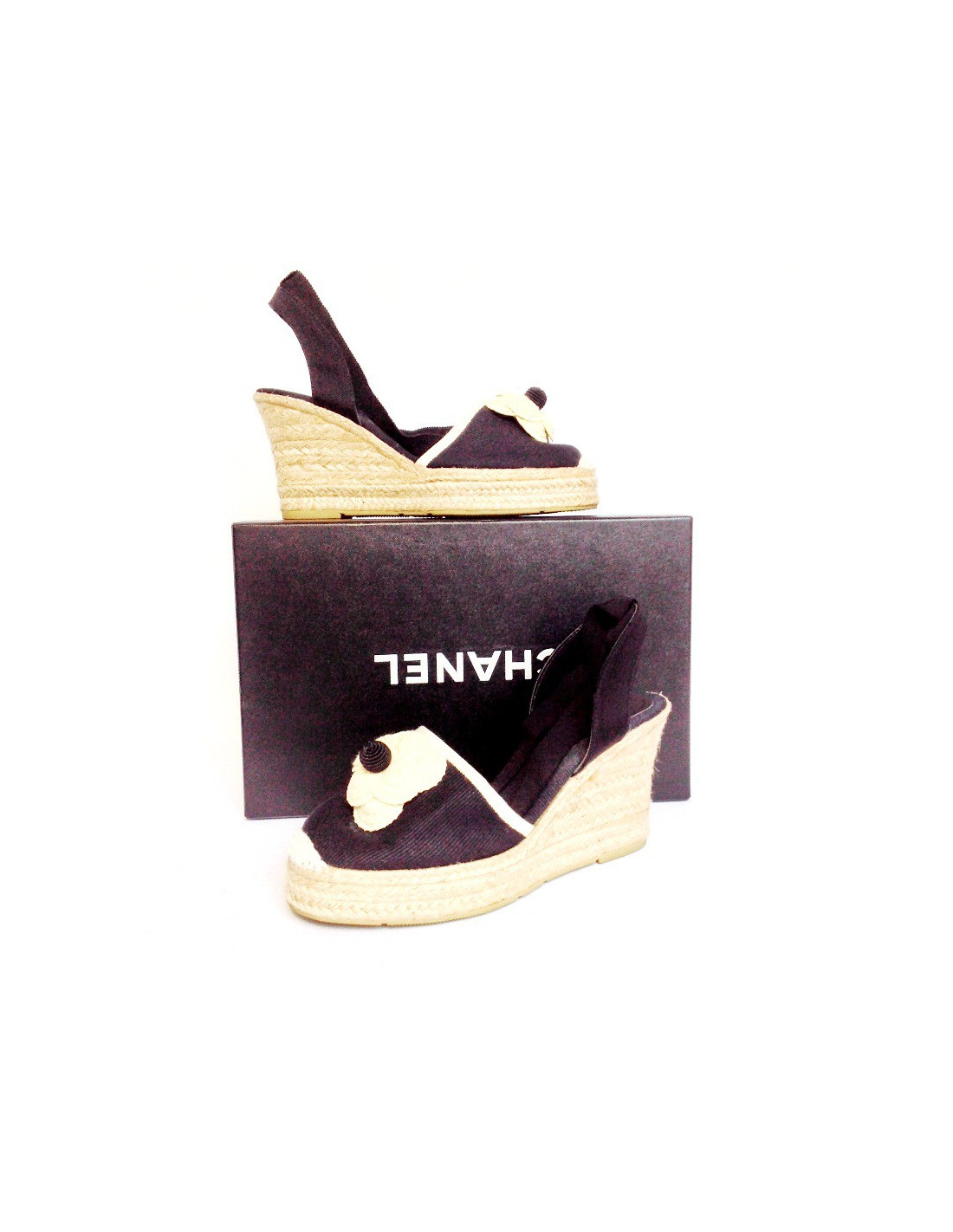 Wedge sneakers Chanel Black and white colored cotton broken T 36 in very good condition.