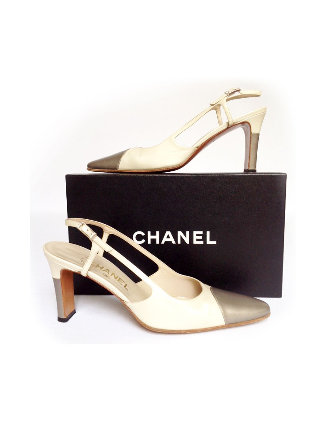 Pumps of the House two-tone Chanel beige and grey size 39.5