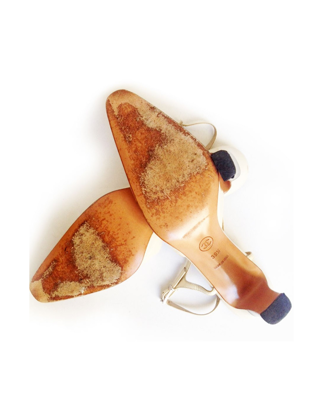 In good condition. A small mark at the level of the left heel. The leather is slightly pleated at some locations.