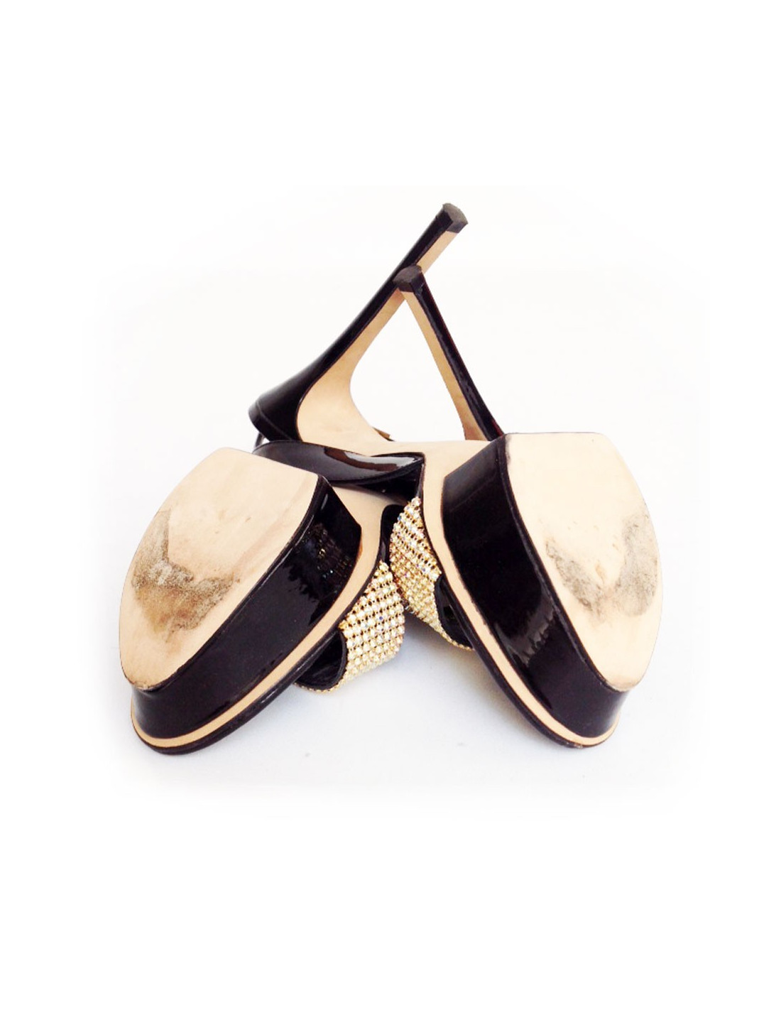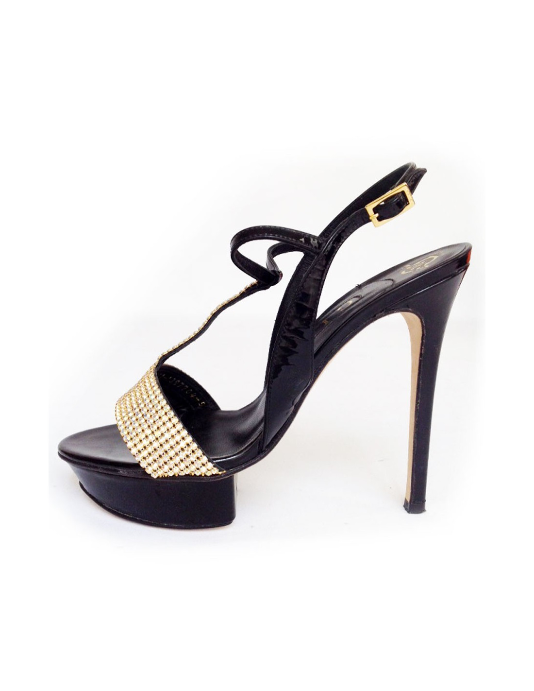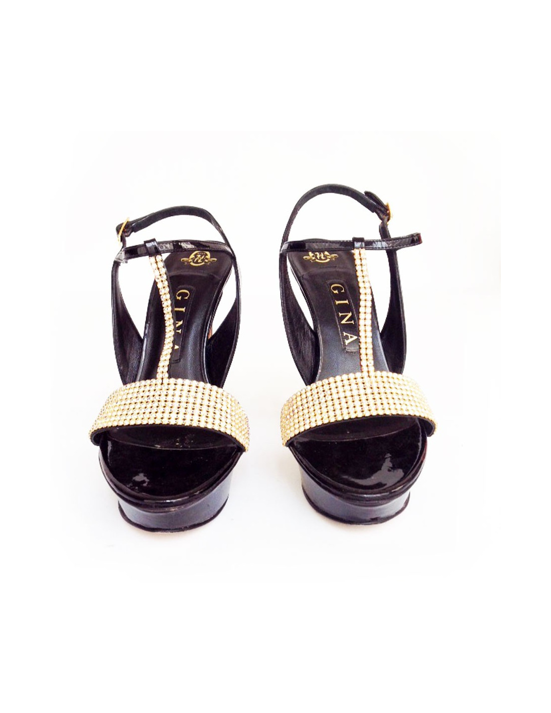 Sandals high T 5, mark English Gina in black patent leather and strass.