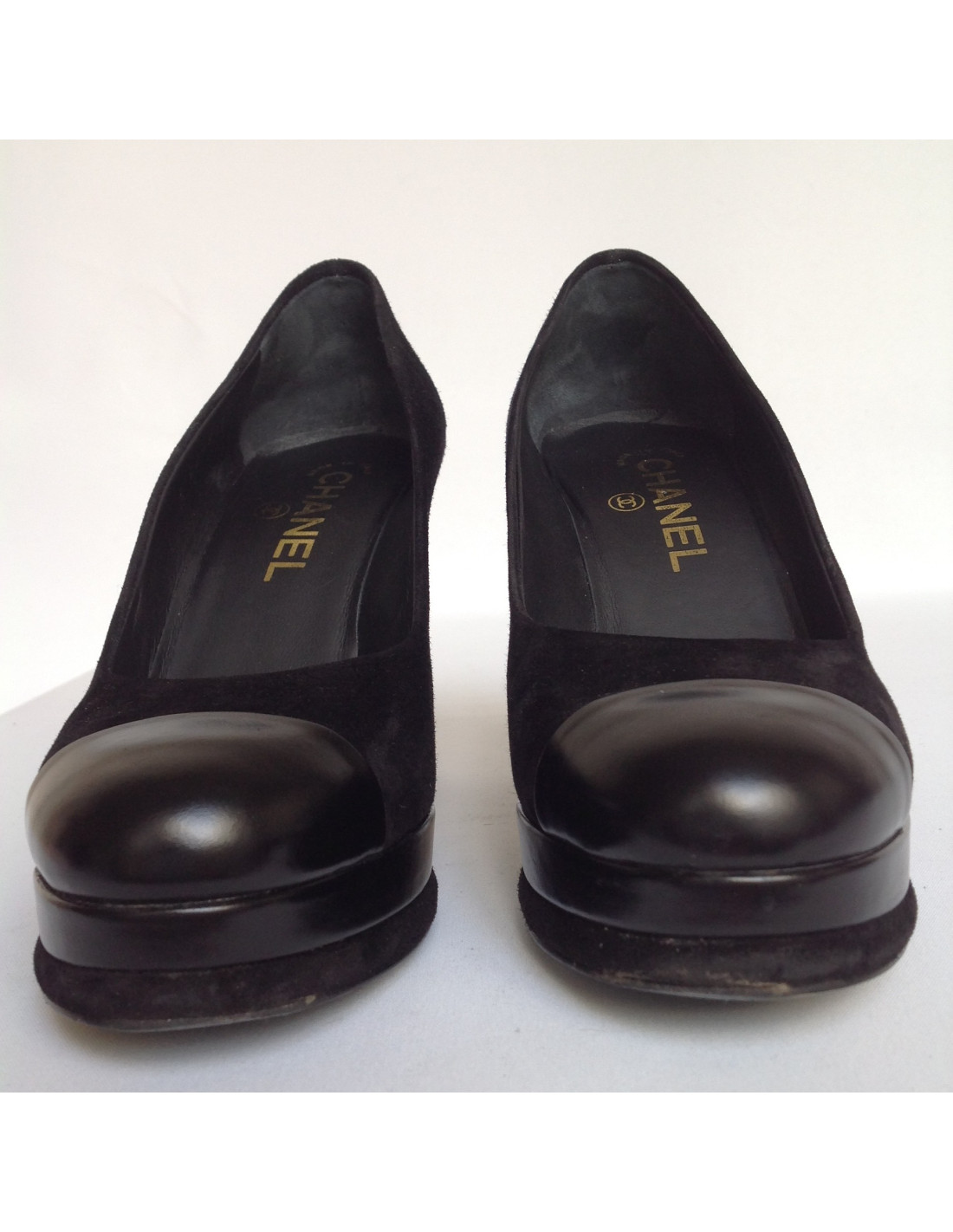 Pumps black Chanel T 37 in bi-material in suede and leather.