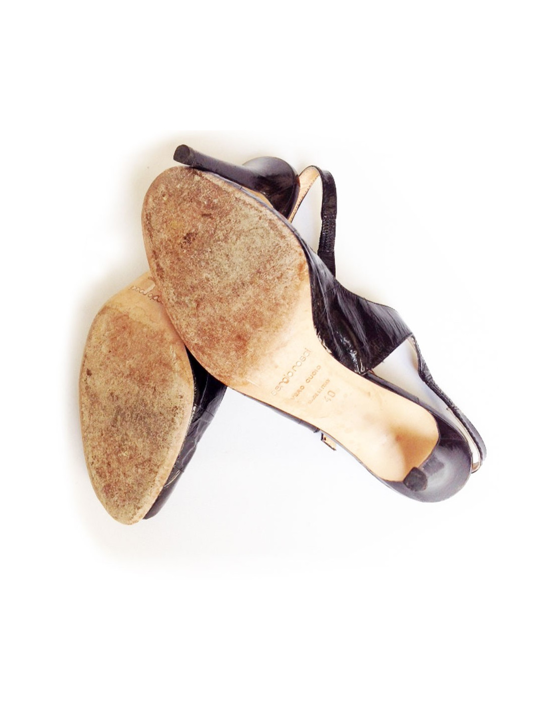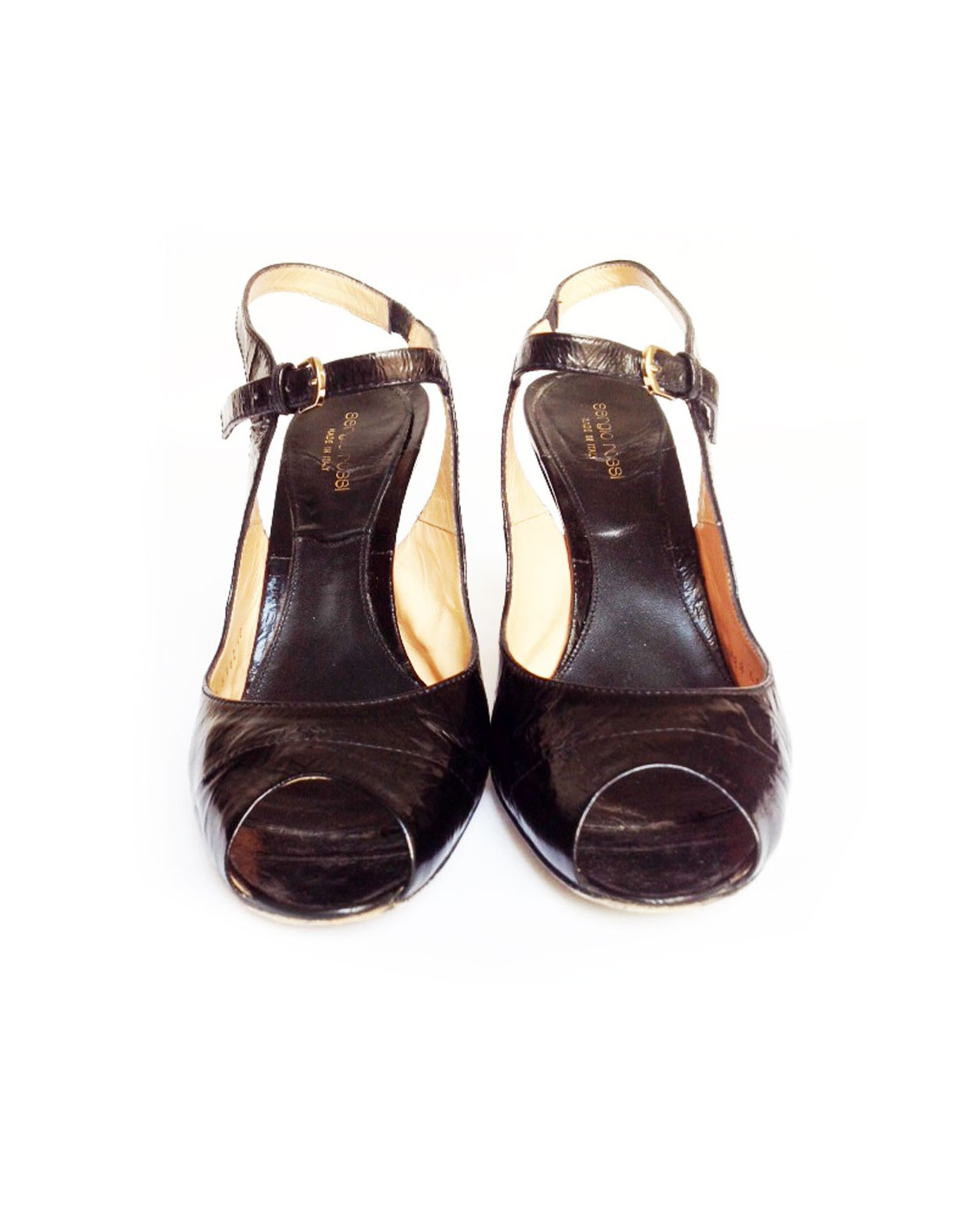 High Sandals SERGIO ROSSI Black patent distressed leather