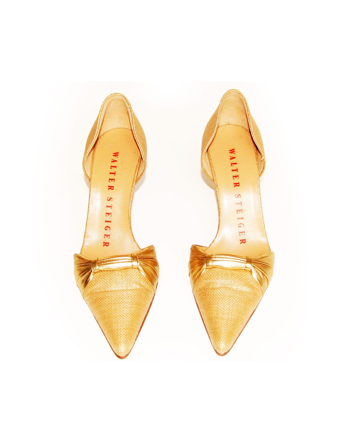Pumps 37.5 WALTER STEIGER Golden leather and raffia