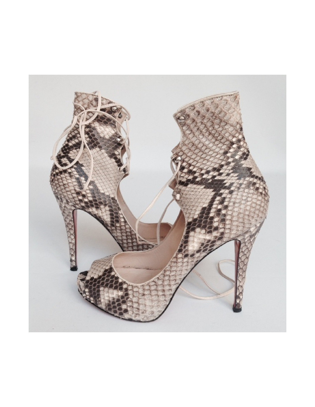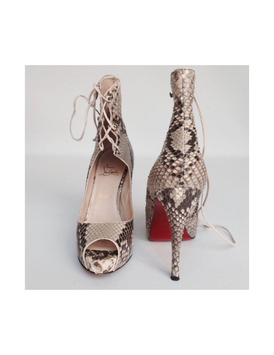 Open ankle boots model 'very private' in python beige and Brown Christian Louboutin T38