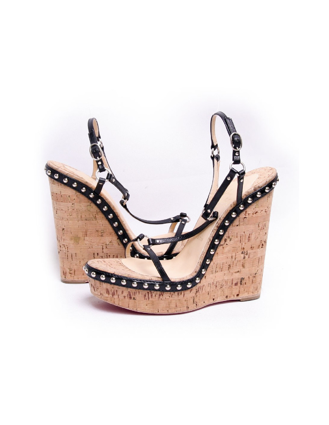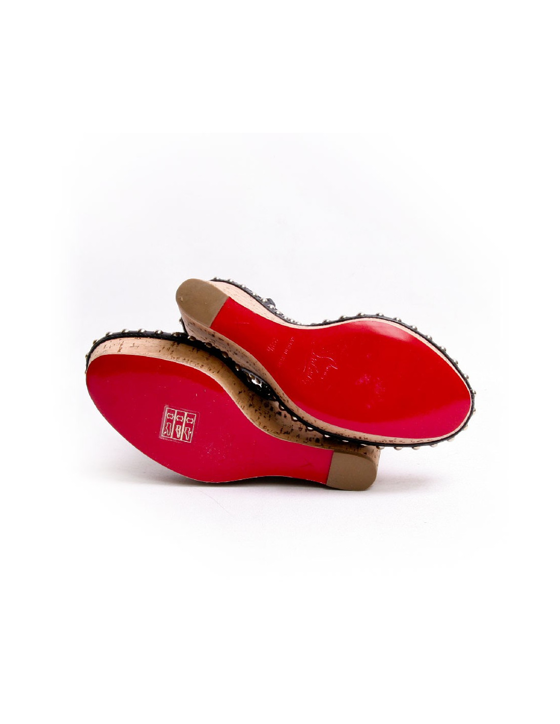 Wedge Sandals Christian Louboutin T38, 5. The sole is Cork. They are bordered by a strip of black leather and silver jewellery. They have never been brought.