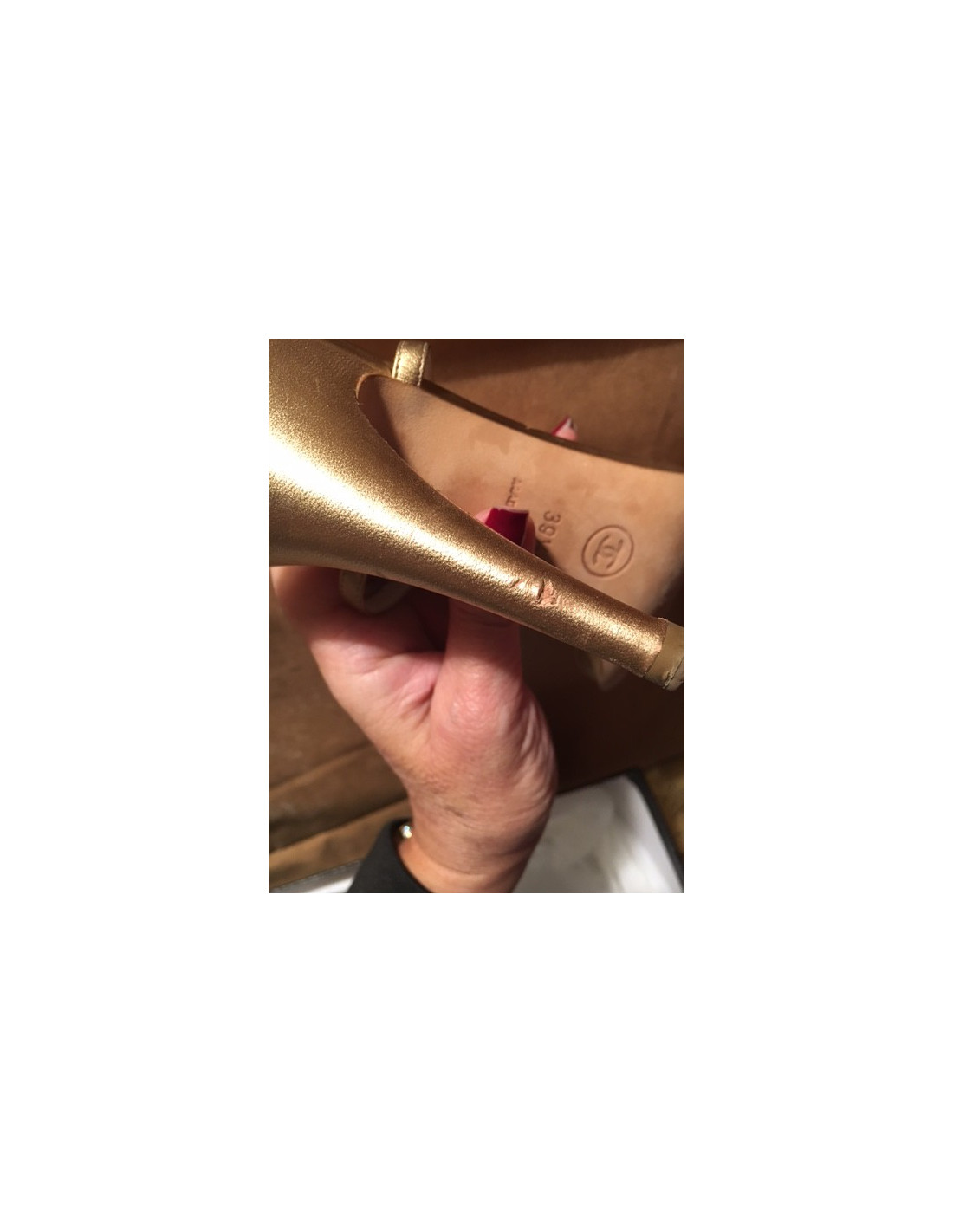 Beautiful high leather Sandals Chanel, pale gold, from the collection of feathers, T39, 5 Golden