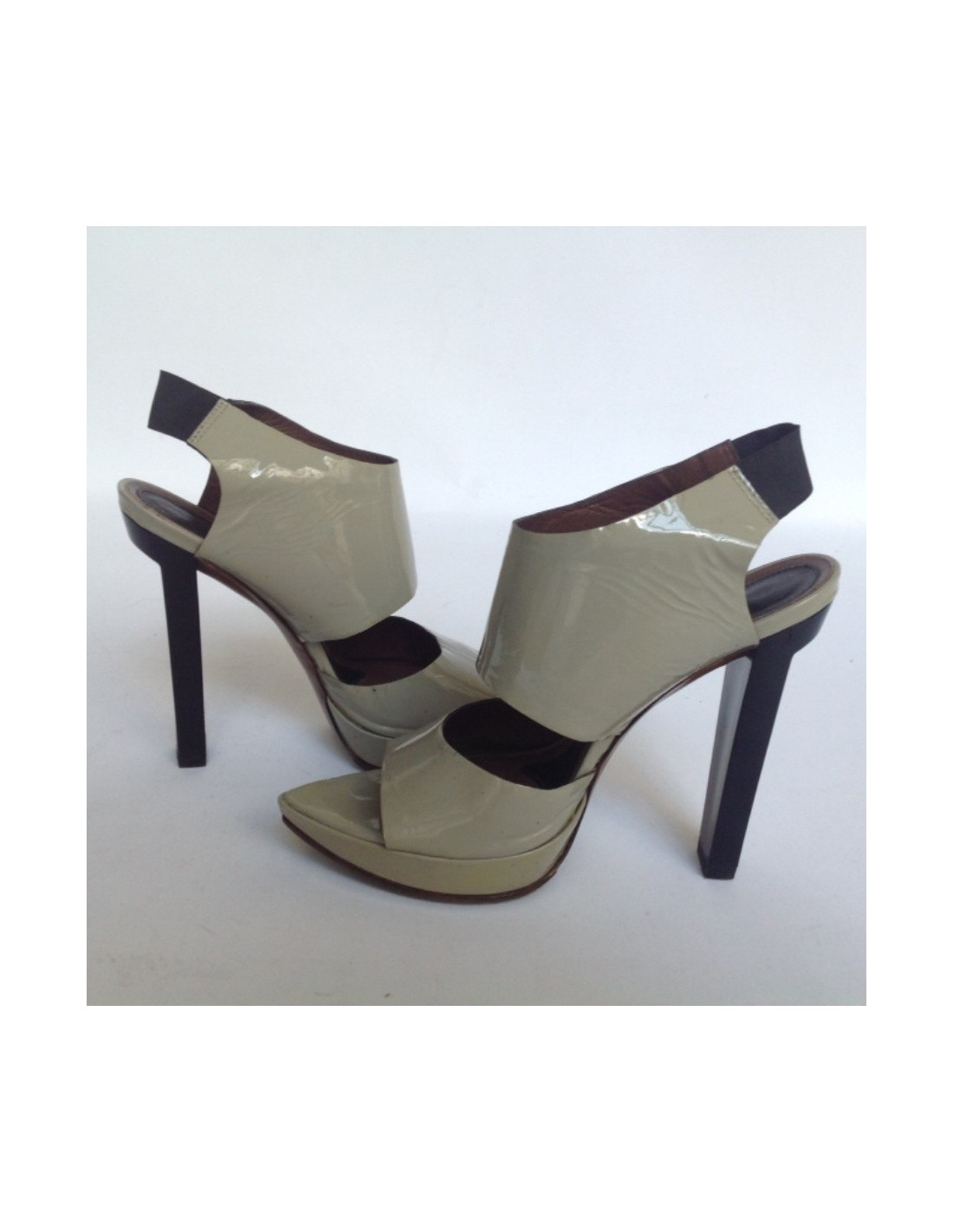 High Sandals Marni T38 grey patent leather. In good condition. Traces of wear on the sides of each shoe.