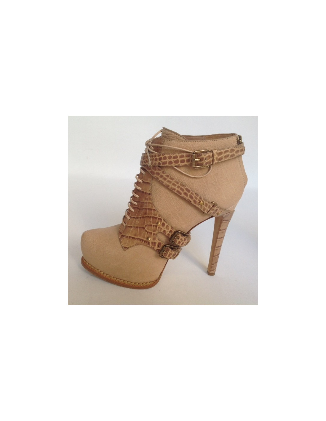 Boots in leather and crocodile in Christian Dior T 40 very light brown tones.