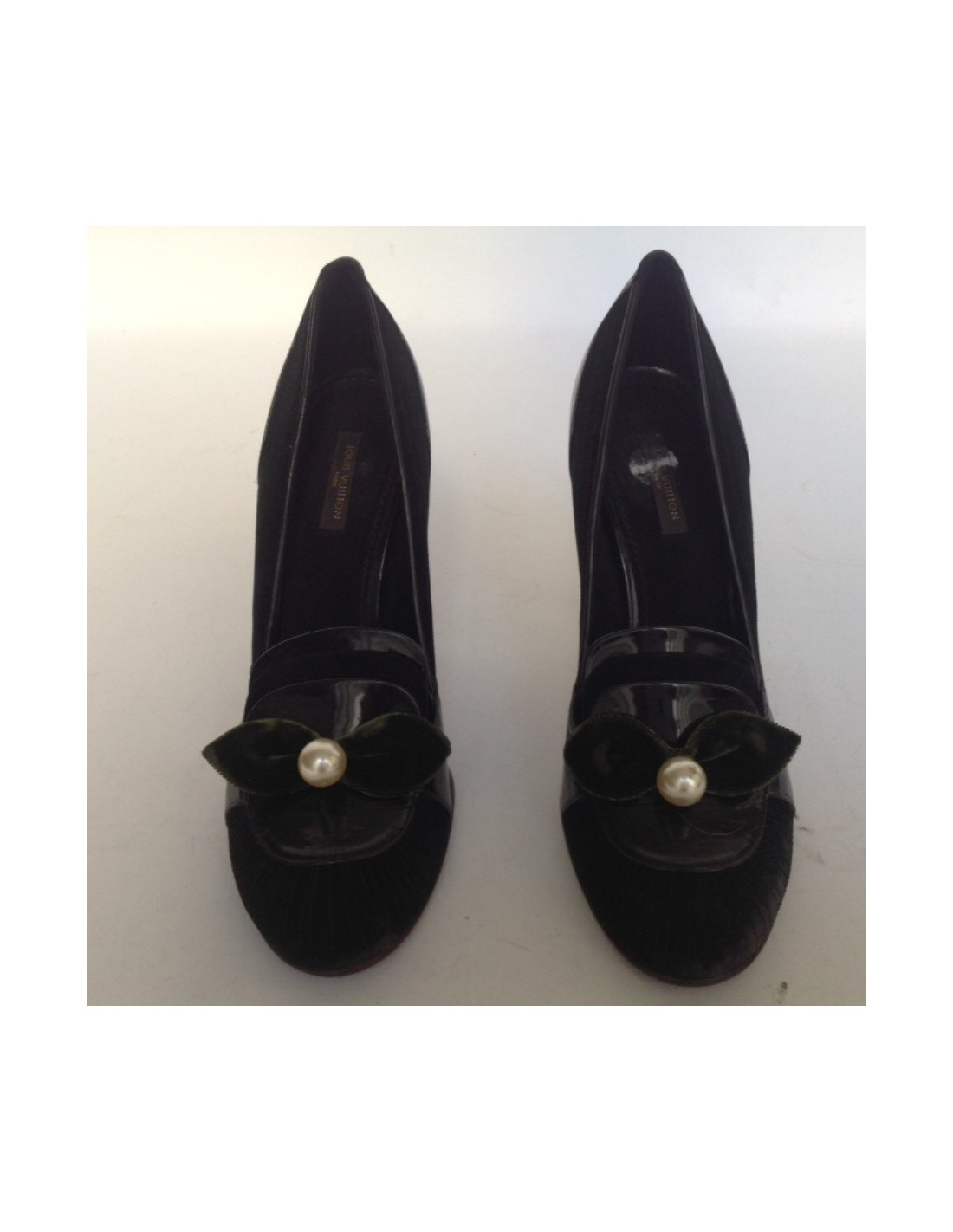 Louis Vuitton shoes in black suede and patent leather.