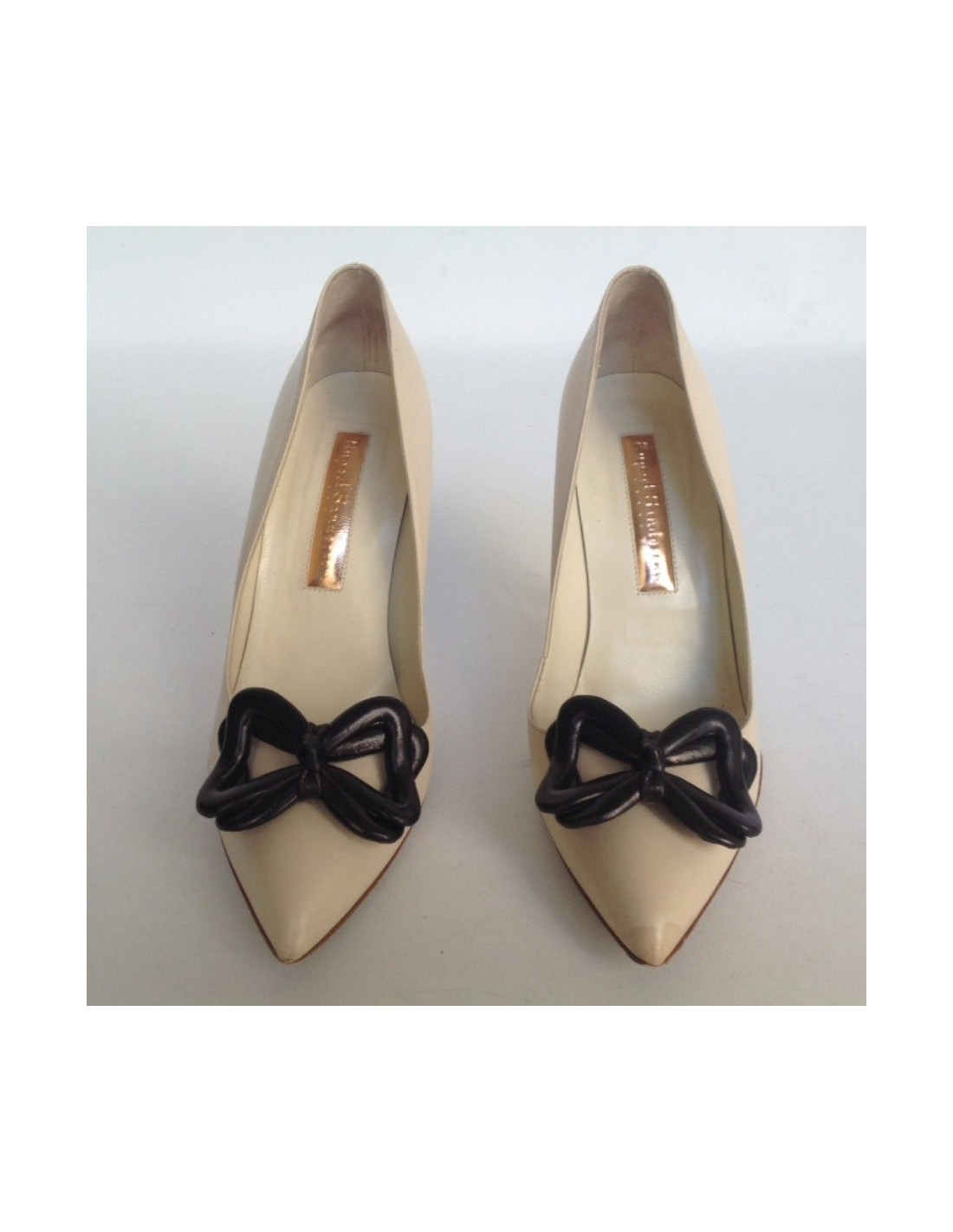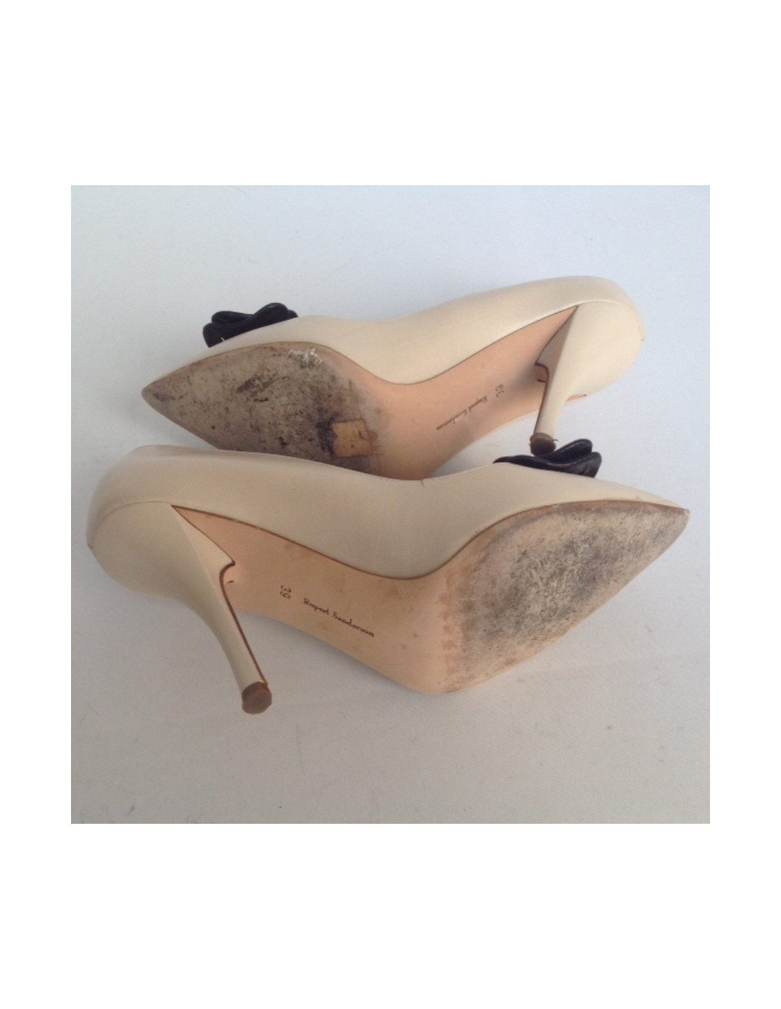 Very elegant pair of shoes beige leather Rupert Sanderson T39 with a nice knot in black leather at the front of the shoe.