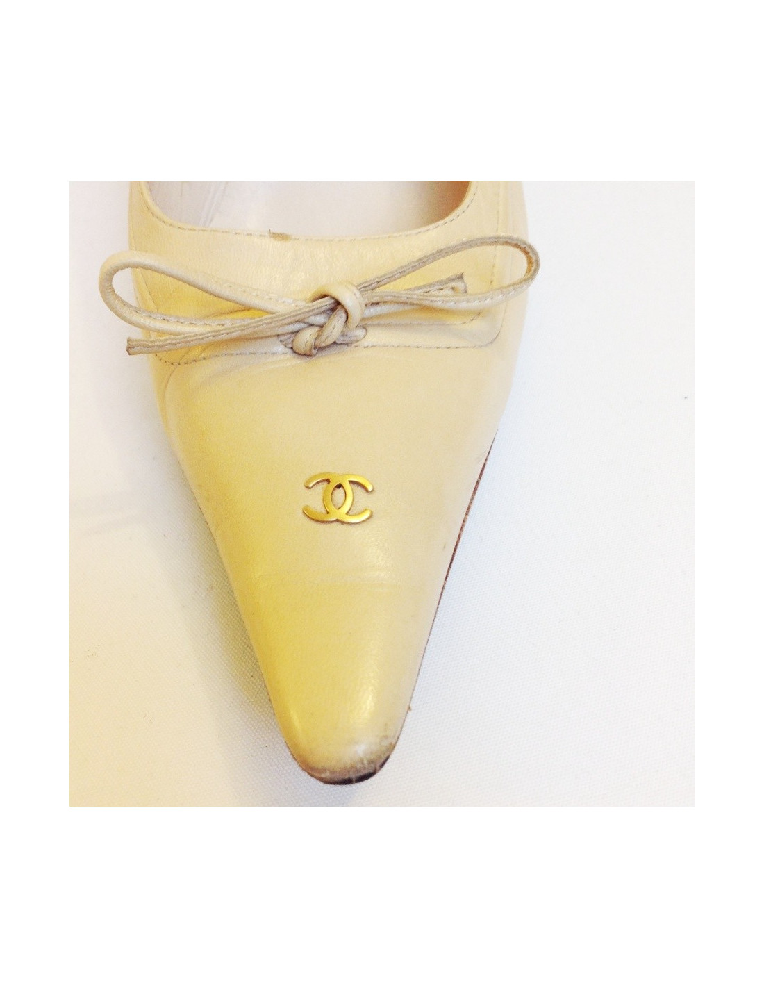 Shoes Chanel beige leather T 37 in very good condition. A bow tie and a double C are visible on the front of each shoe. The shoes have been resoled