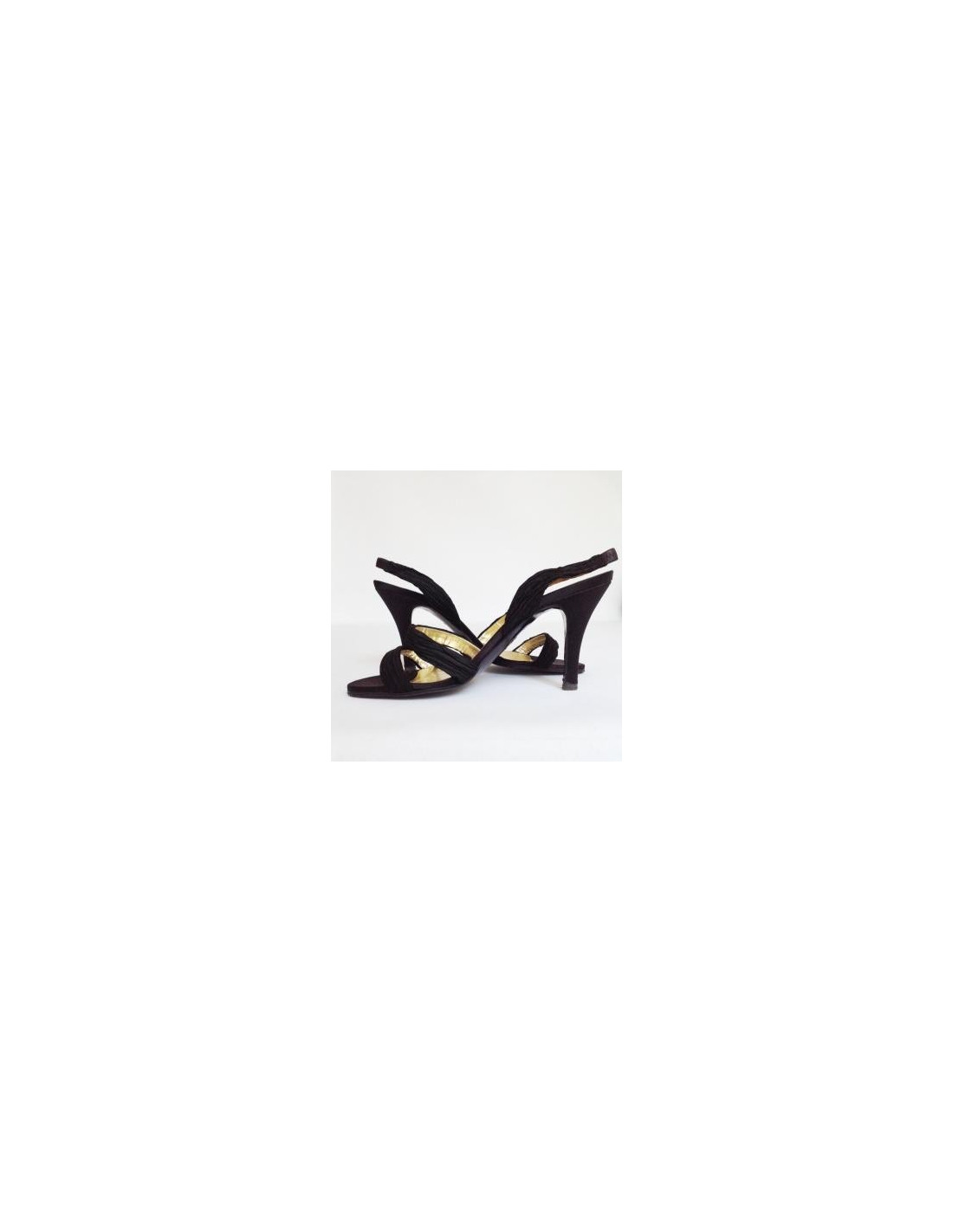 Black Heel CHANEL T36 Silk Satin sandals. They are in very good condition. The Golden insole tells us that this is a Couture pair.