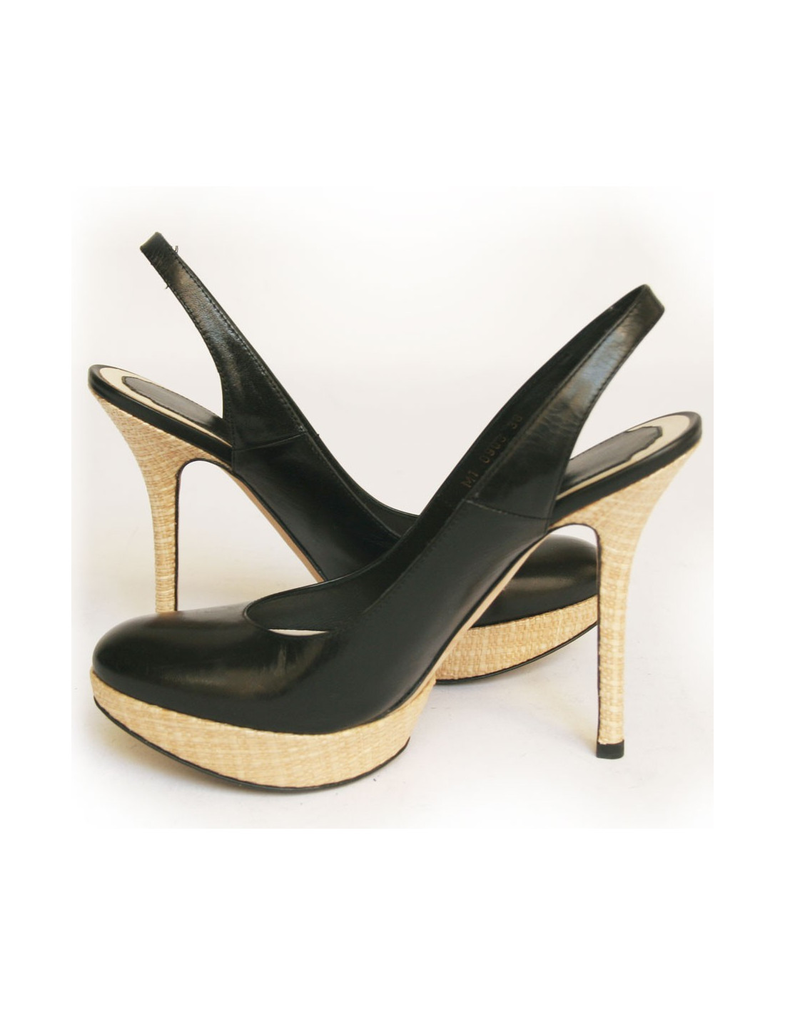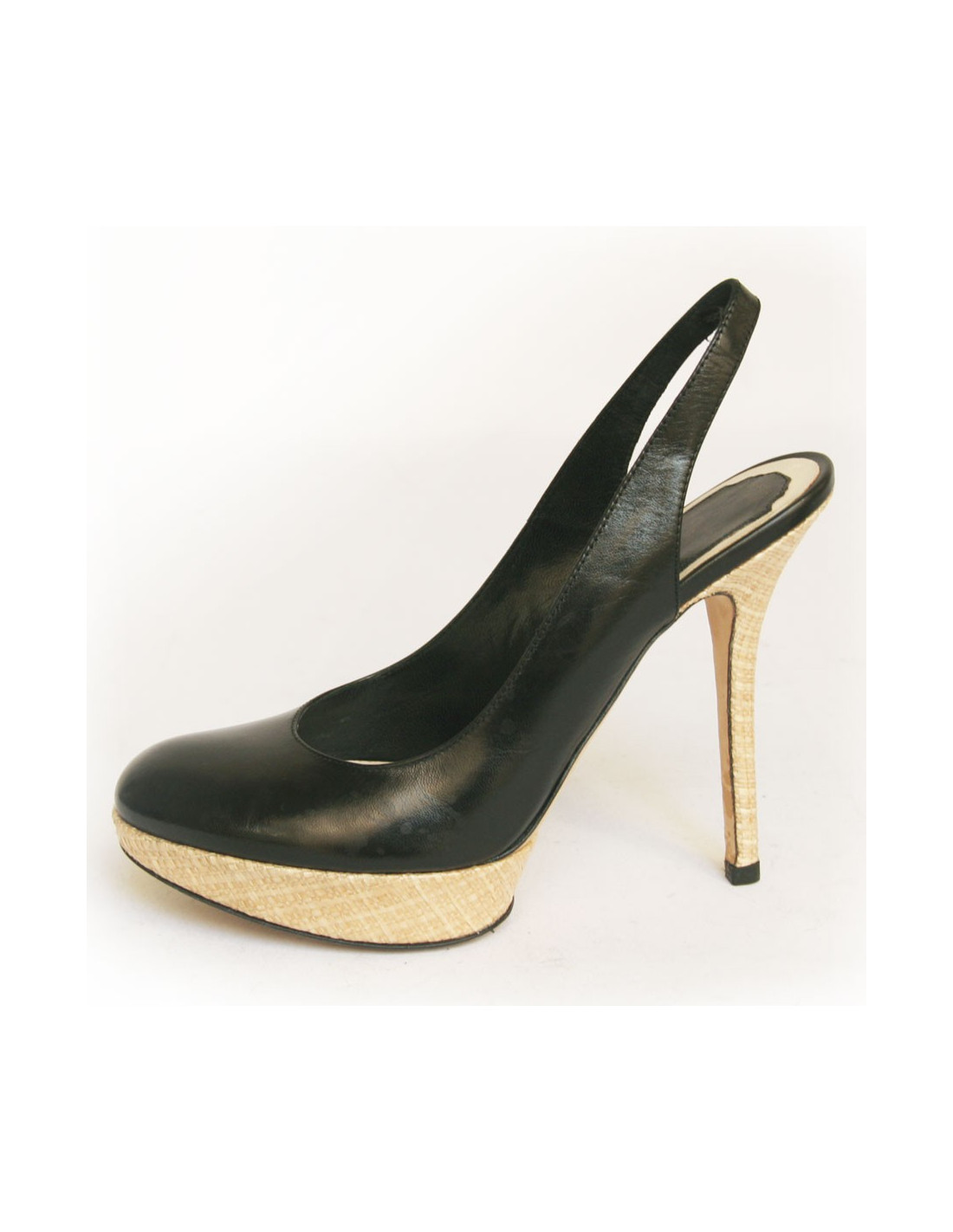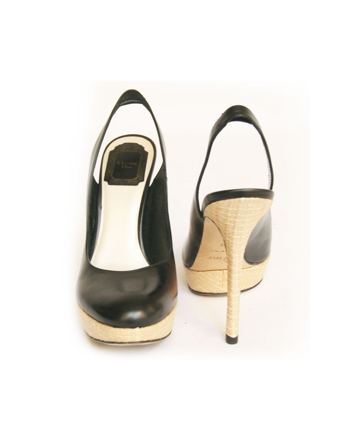 High Sandals DIOR black leather and raffia