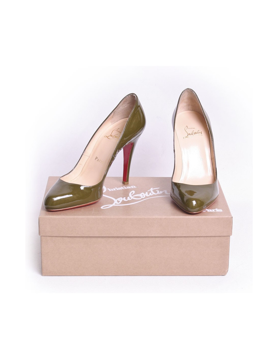 Pumps décolleté 863 of the House Christian Louboutin patent leather khaki green. Size 36. Round tip. Elegant and easy to wear with pants with a dress as well. In very good condition. Worn very little.