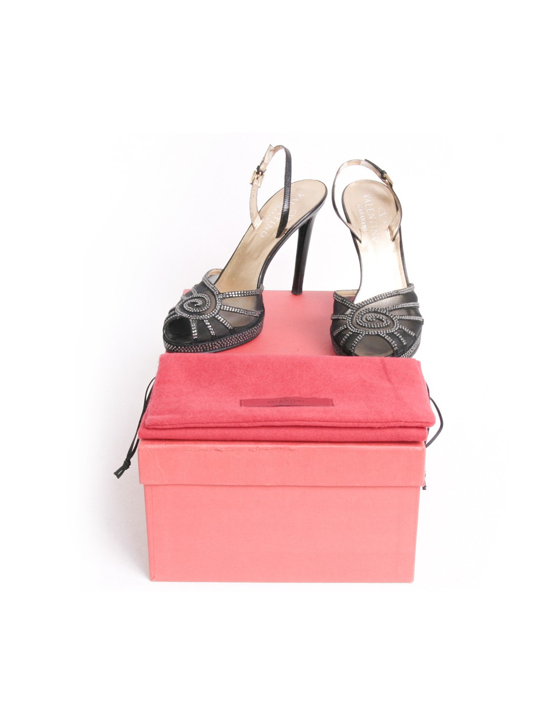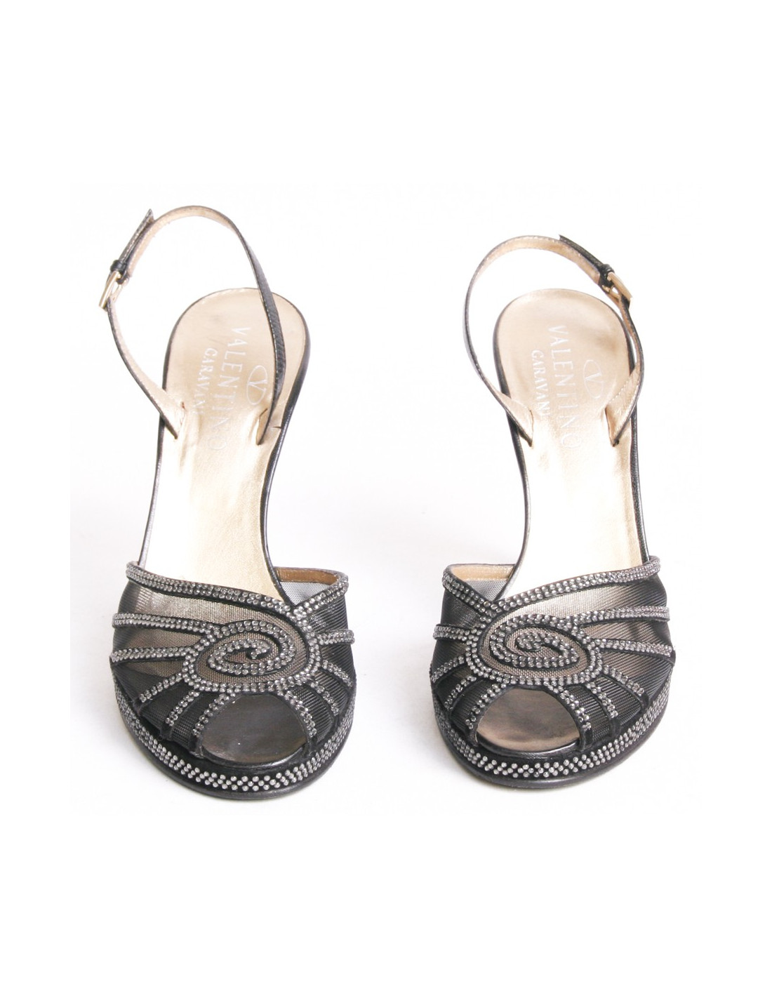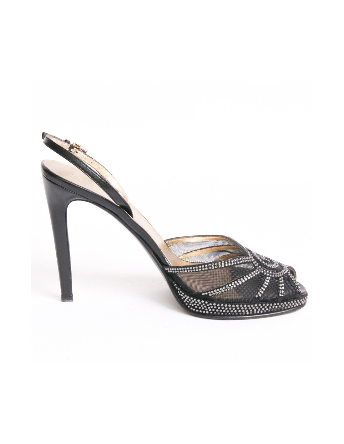Valentino T 37 black knitwear and rhinestone pumps. They close with a thong that comes to strengthen the ankle. In very good condition.