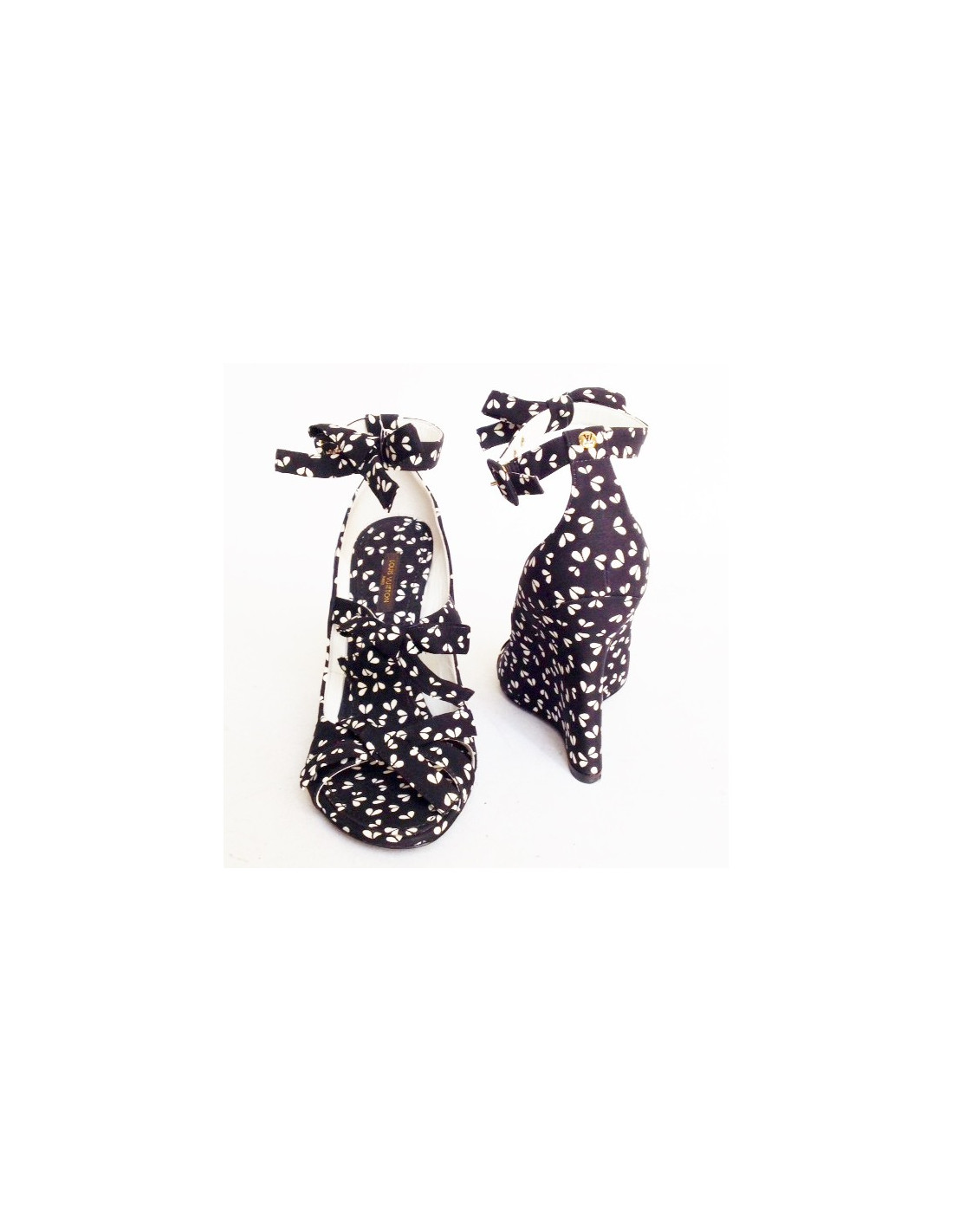 Very elegant Louis Vuitton pair of open toes wedge pumps, fine and refined in printed canvas. New condition.