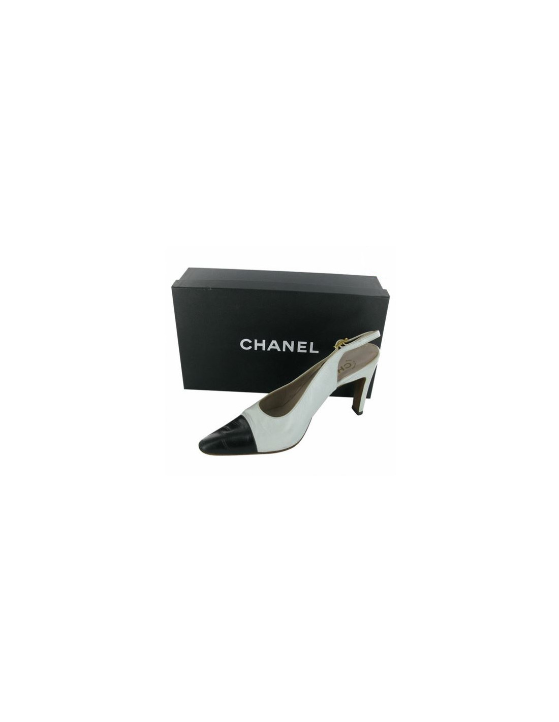 A classic - shoes CHANEL - pale blue and black two-tone leather