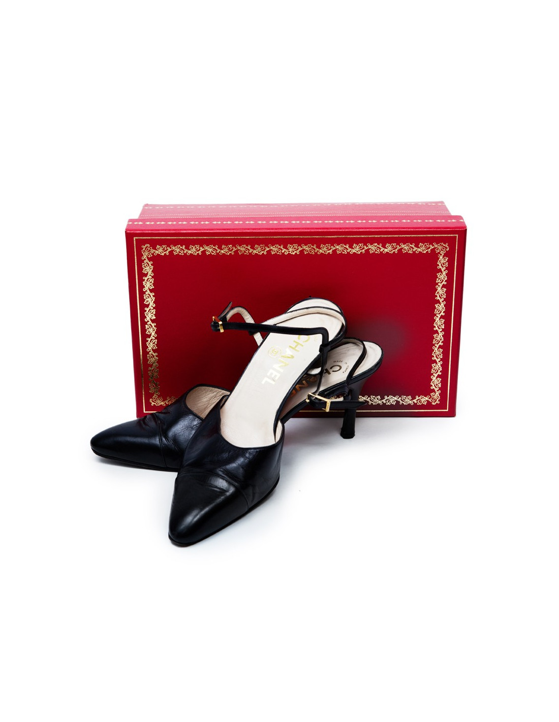 CHANEL T 39 black leather sandals