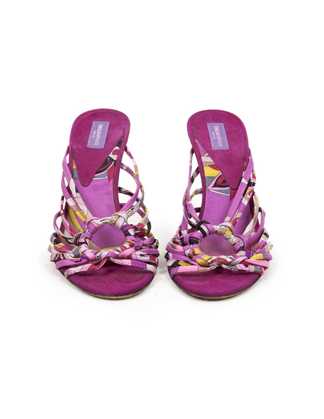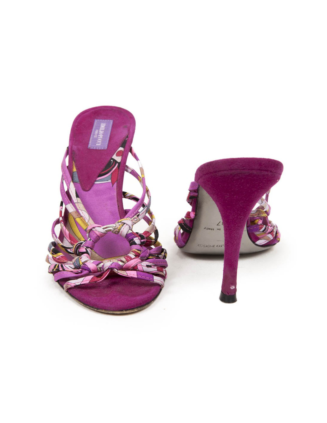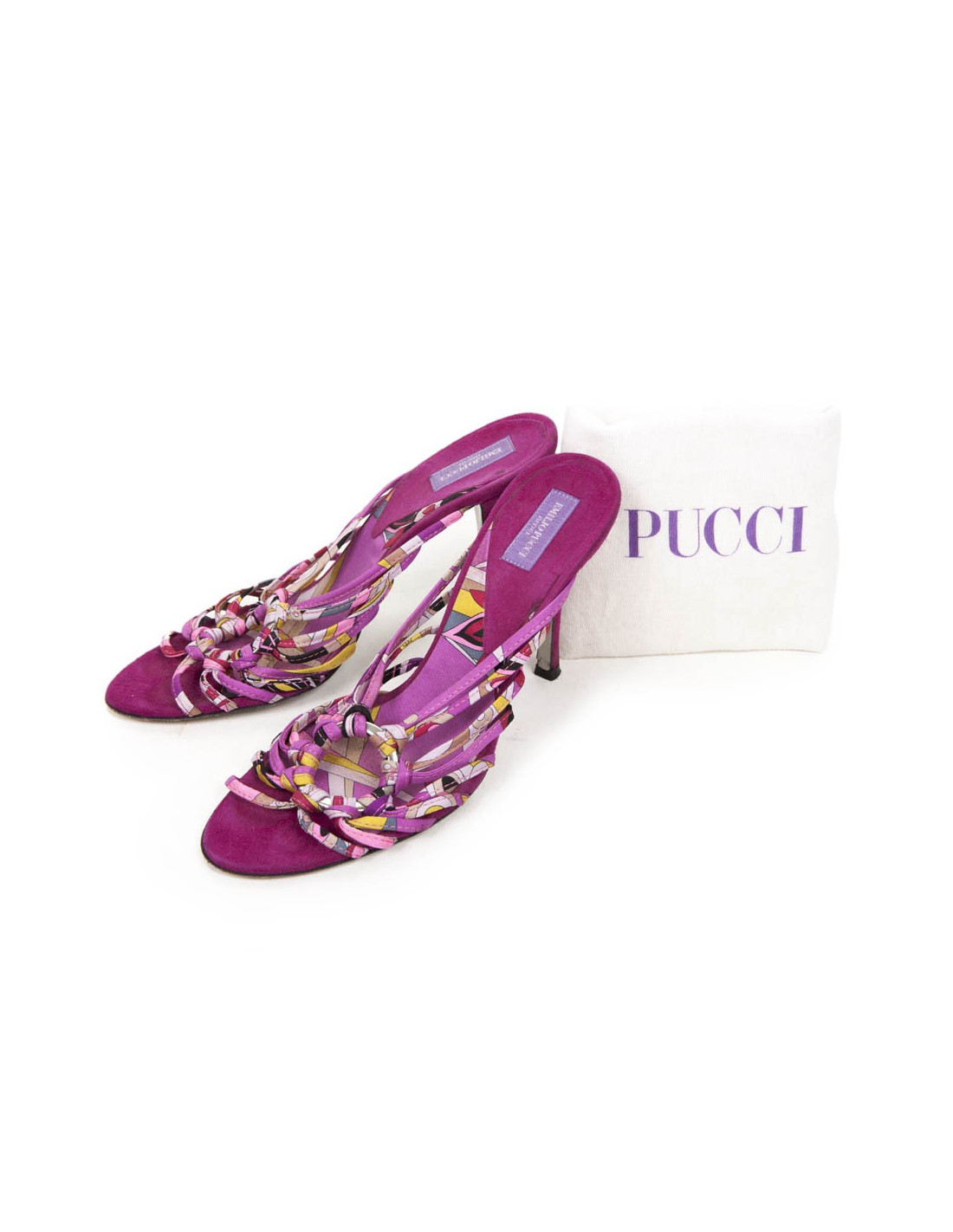 Sandals high T 37 Emilio Pucci in purple suede and pieces of scarf. metal silver ring. In very good condition (on the left heel a little hitch)