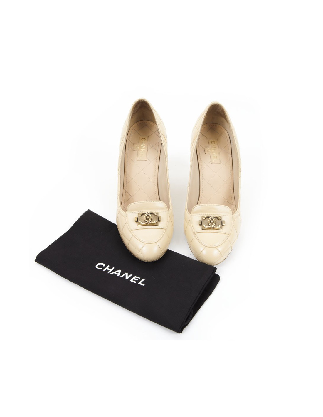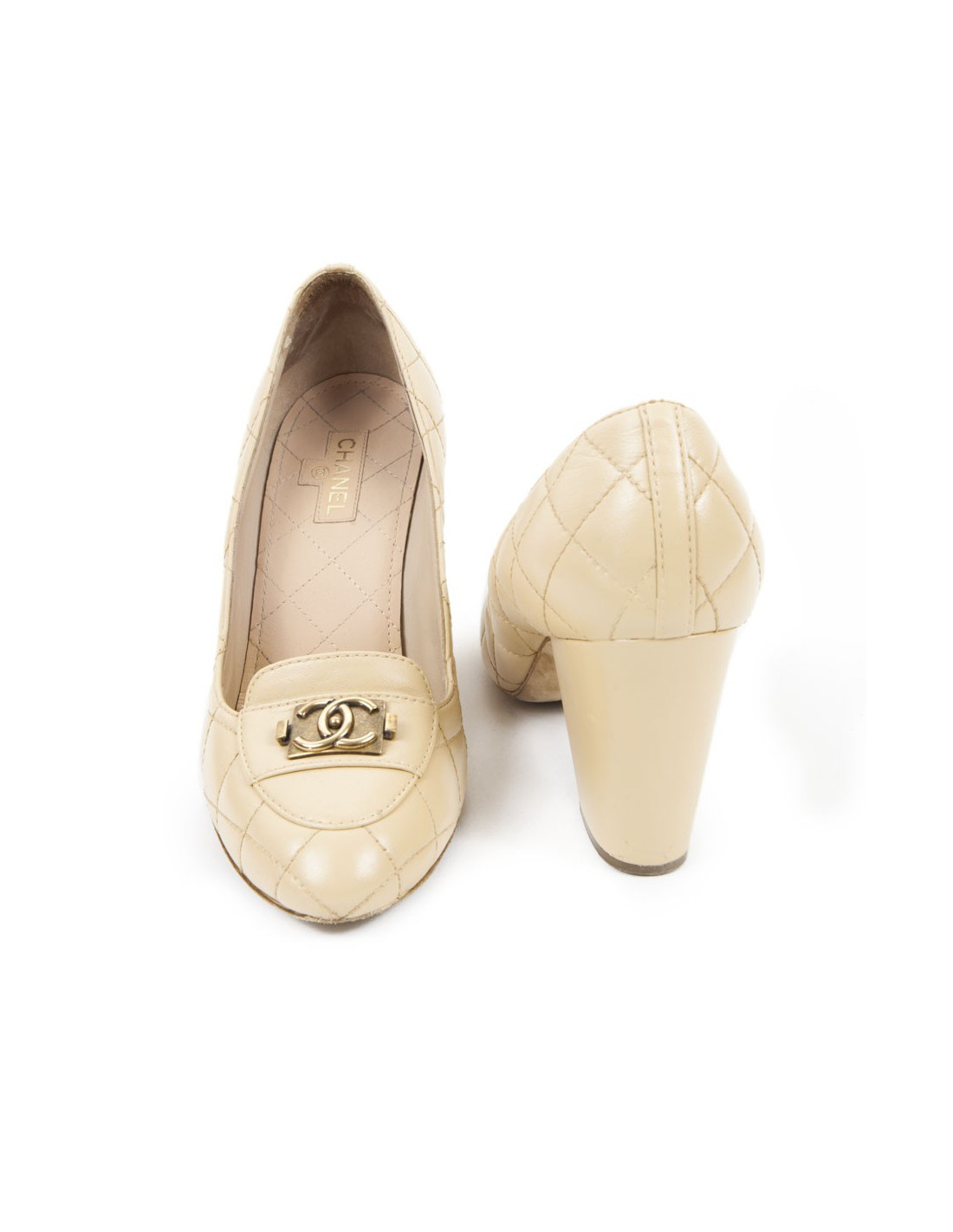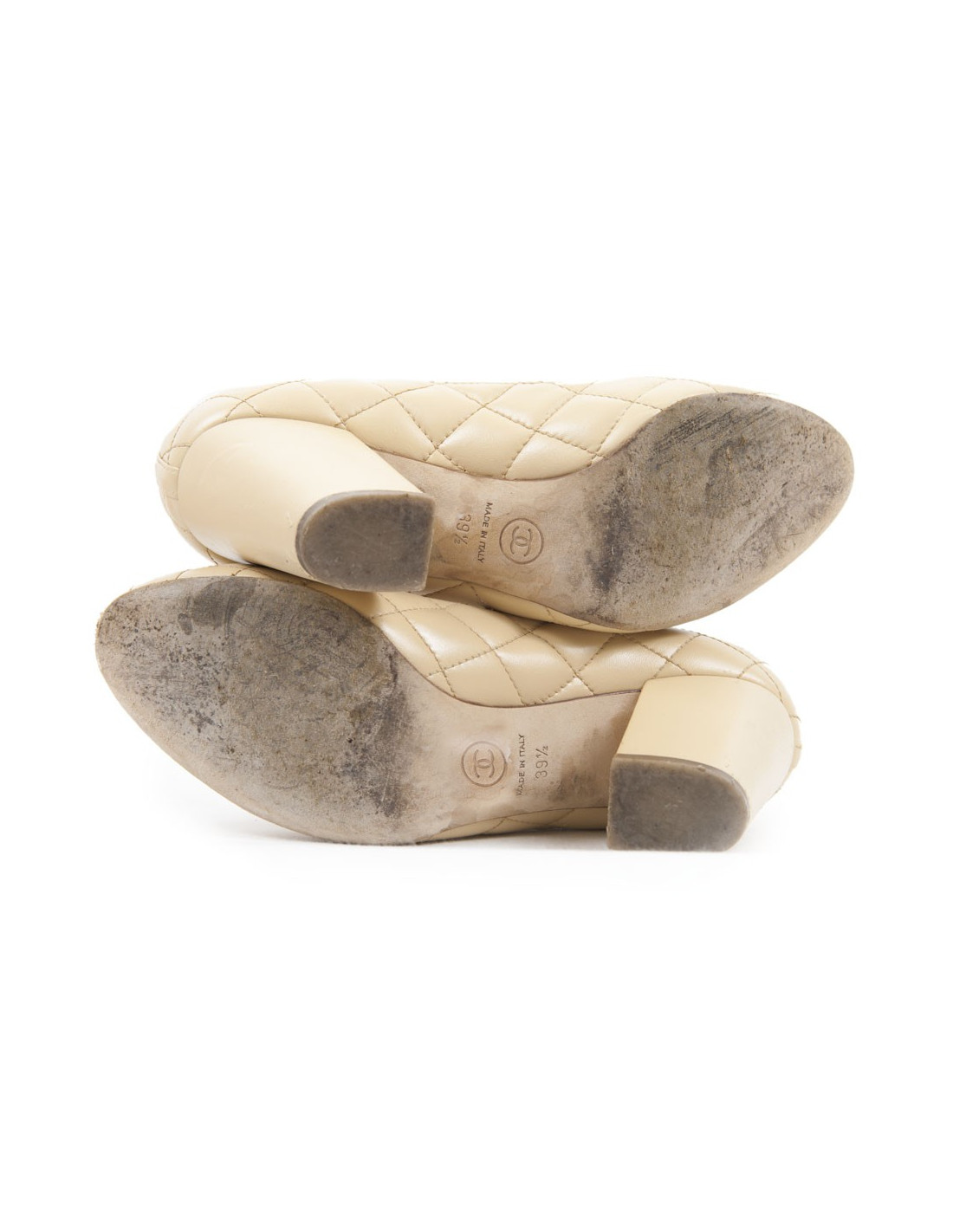 Shoes Chanel size 39.5 beige quilted leather, the front of the shoe is adorned with the copper loop of the "Boy" with the initials "CC".