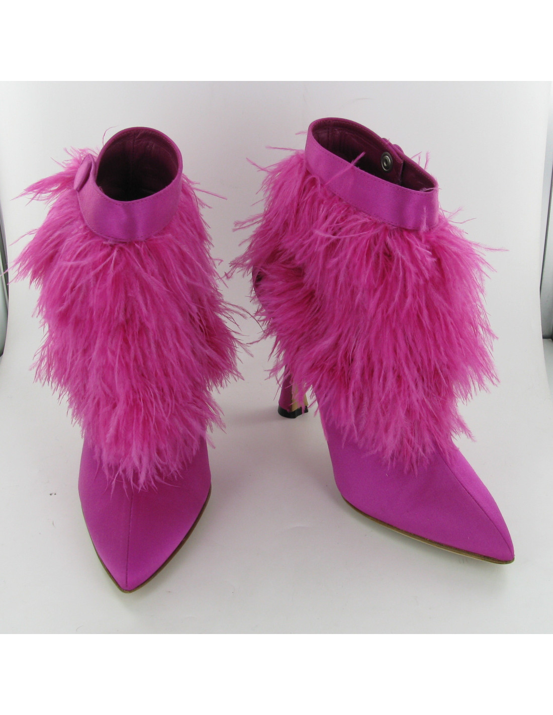 Beautiful pumps MANOLO BLAHNIK pink satin and pink feathers. T38