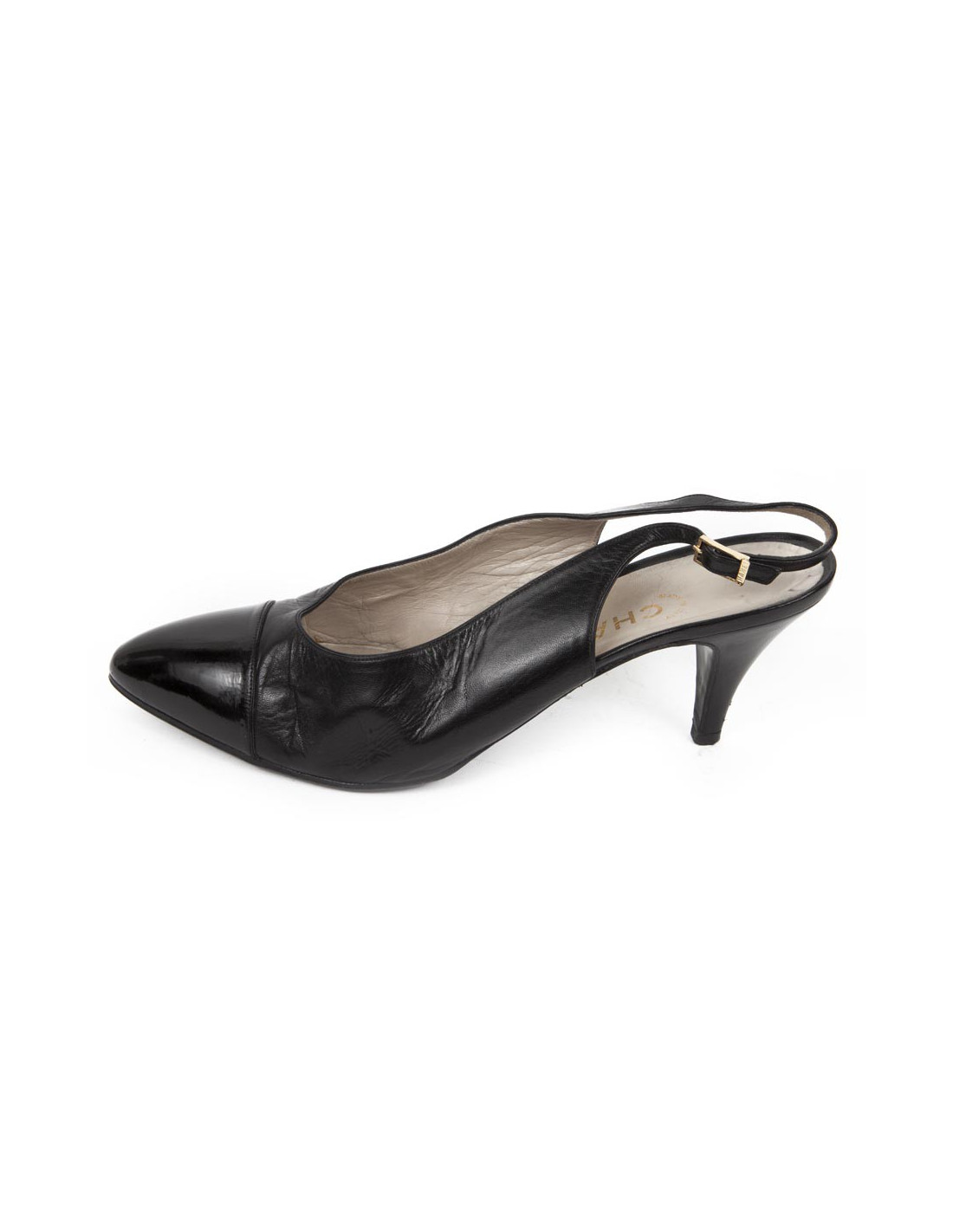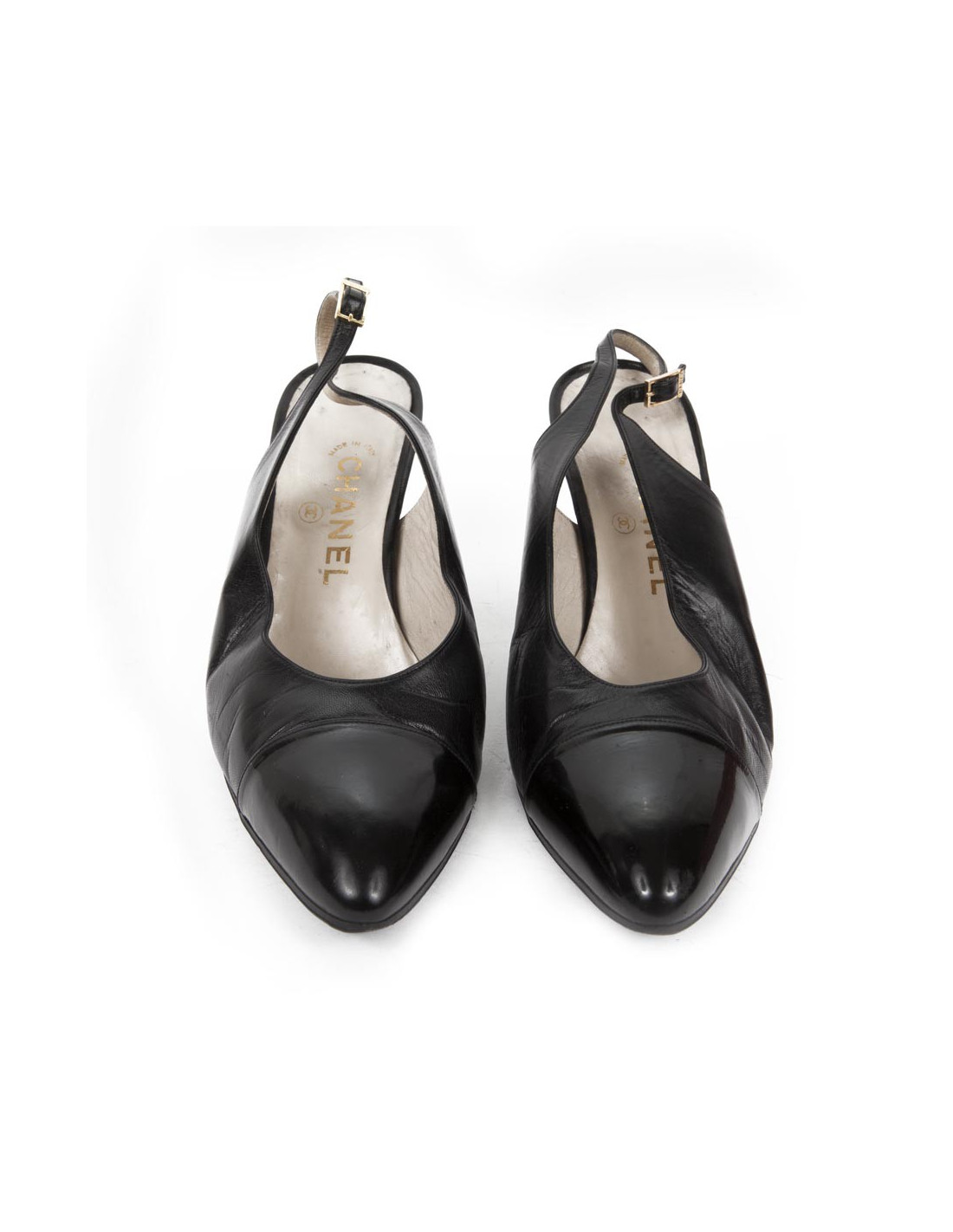 Chanel leather Sandals black lamb and black painted tip T 9.5 UK representing a 40.5 french.