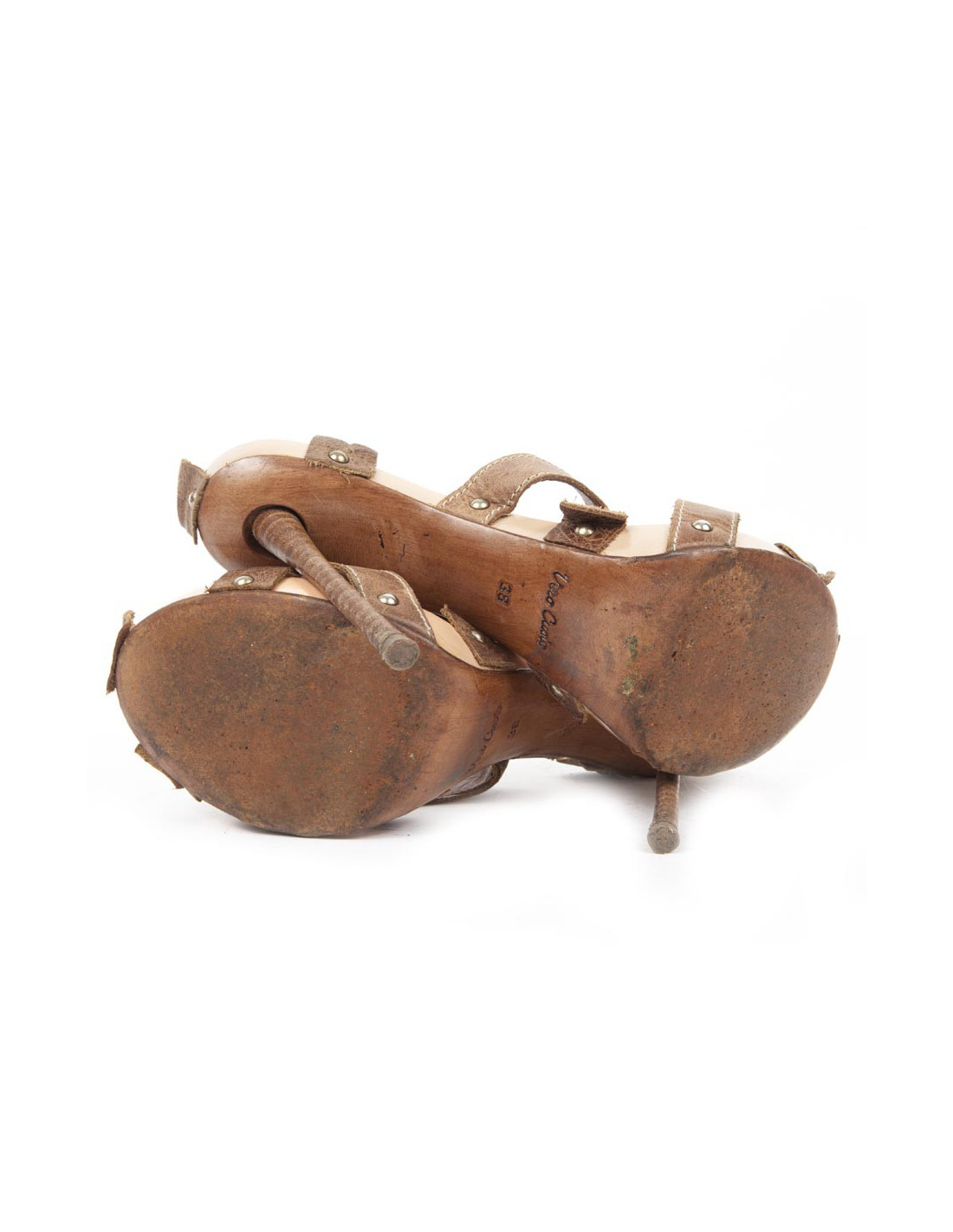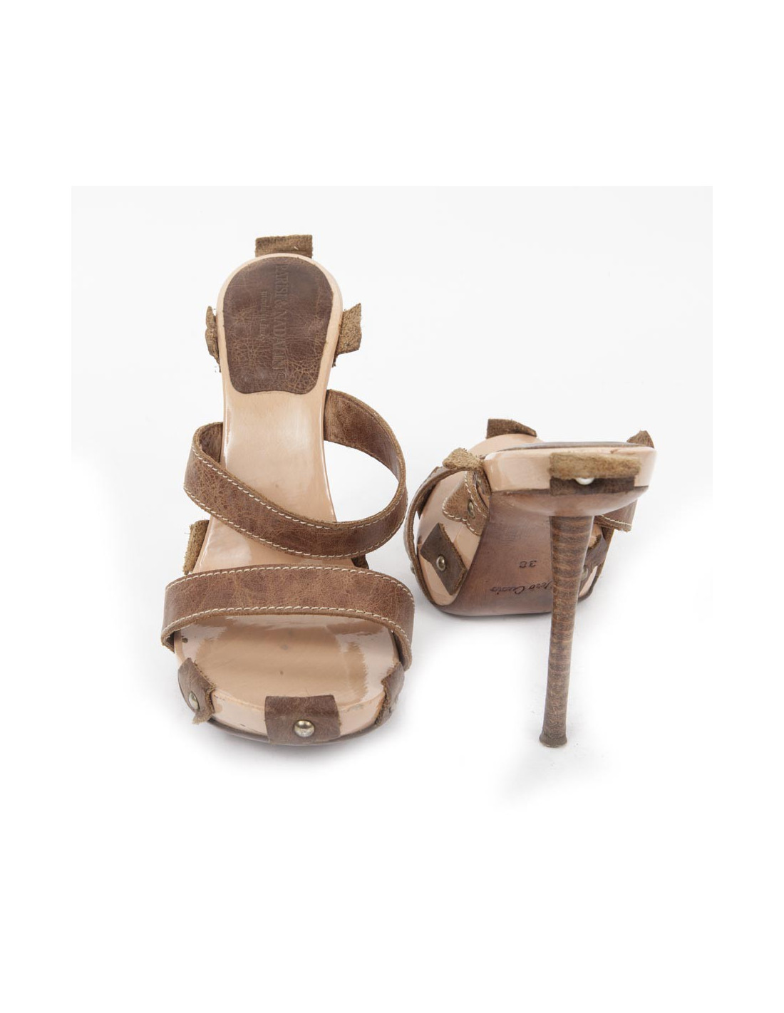 High Sandals Parisi & Nadalini T 38 en, the straps of the shoes are made of natural leather and the heel is in glulam.