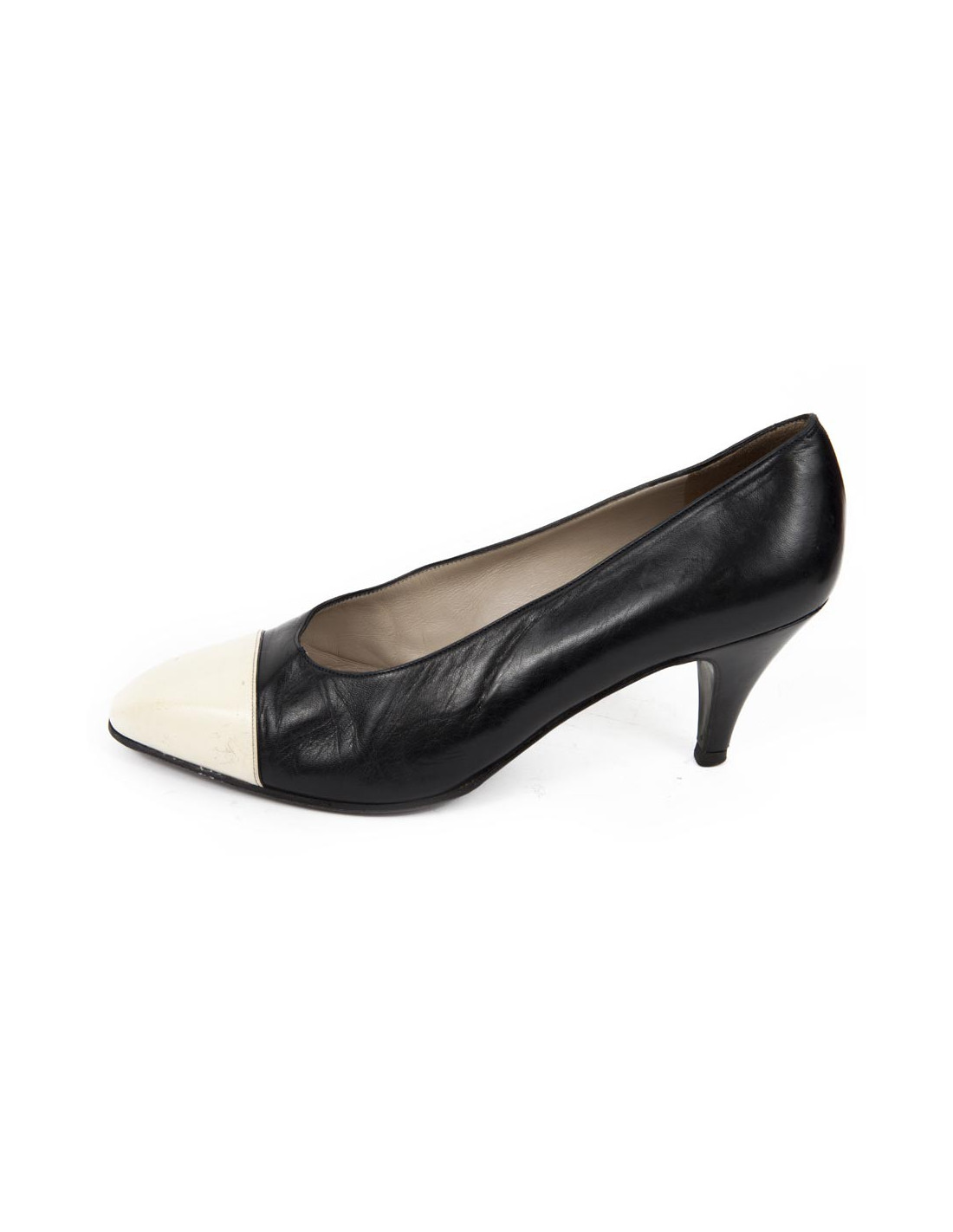 CHANEL T 37 leather Navy Blue and ecru shoes