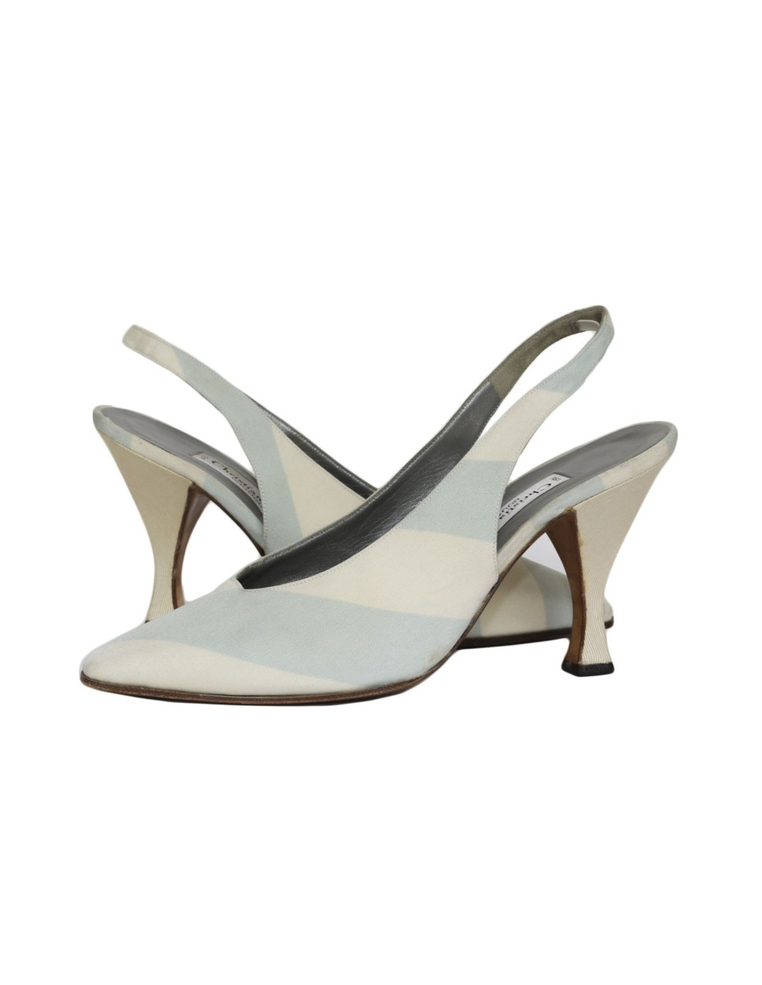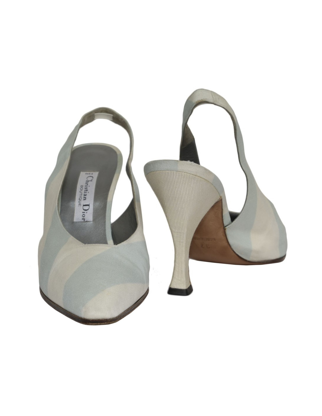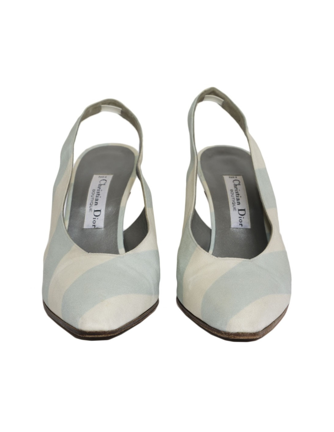 Escarpins CHRISTIAN DIOR T 37, en toile bicolore bleu clair et blanc.