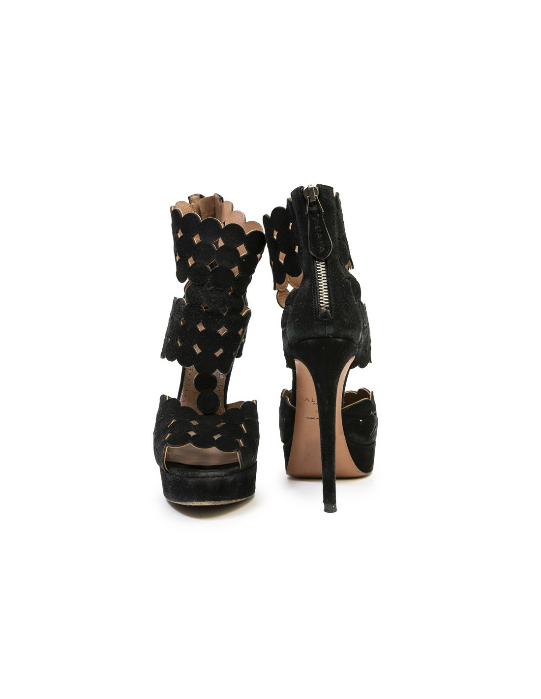 Last items in stock PUMPS - WEDGES ALAÏA t 36 low boots in green and Black Suede ALAIA 16661 600.00 € Superb pair of Alaia boots green and Black Suede low. Size 36. They can be worn with a dress over jeans. Very elegant and refined, they marry the shape of the foot. In very good condition. Worn very little. Height heel: 14 cm, platform height: 2.5 cm Add to cart