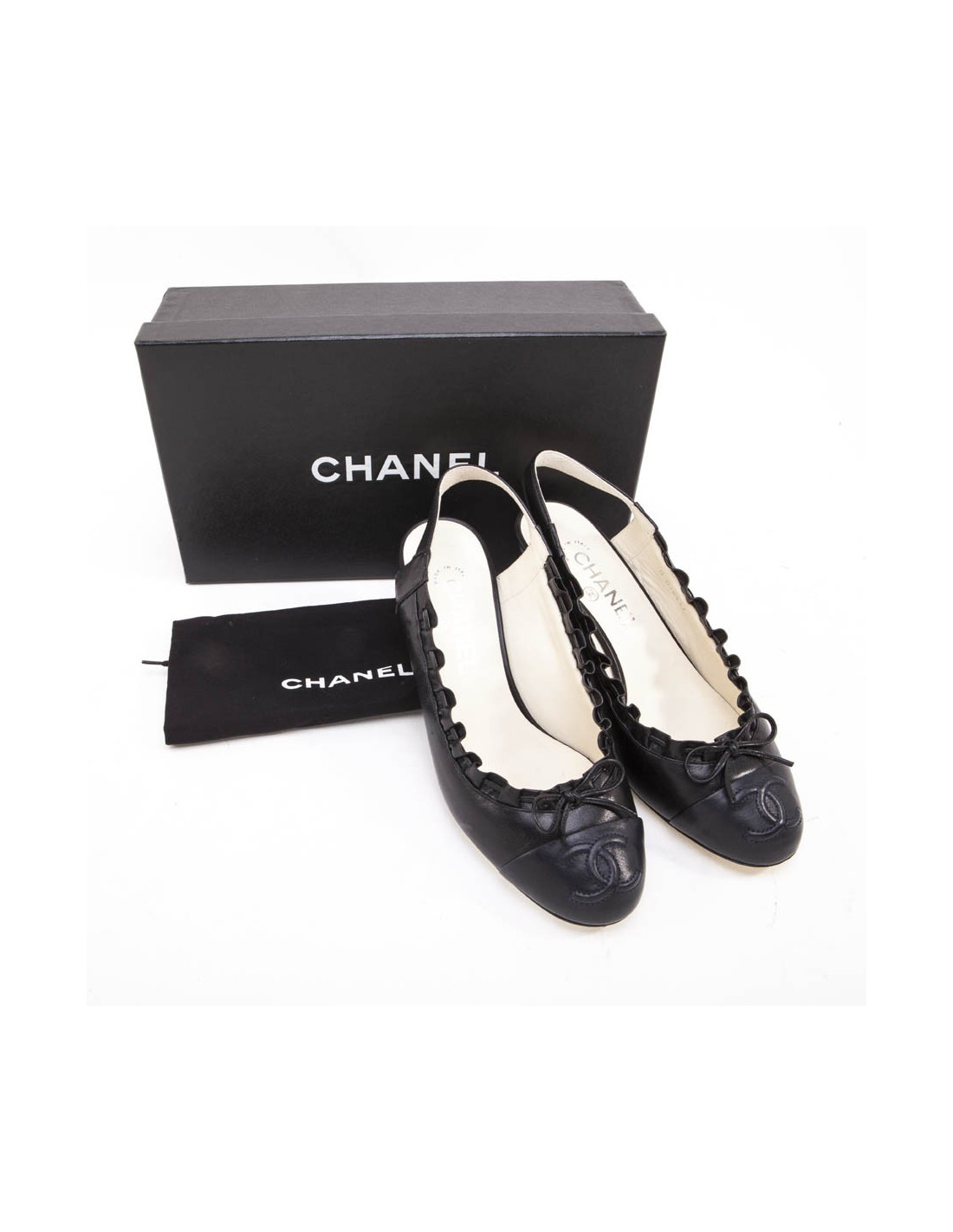 Pumps in black two-tone leather and dark blue edge of the House of Chanel. Size 38.5. In very good condition. Very little worn.