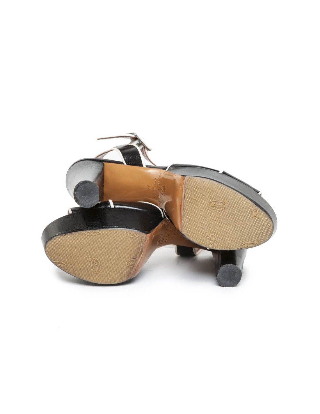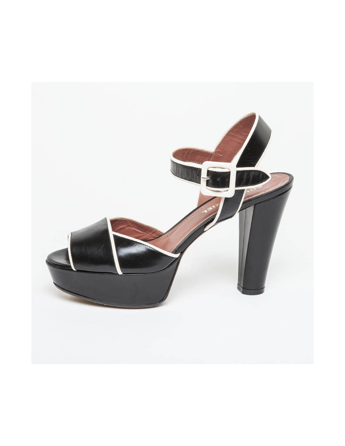 Sonia Rykiel black and white two-tone leather sandals. Size 37. In excellent condition (very little laid a topy added).