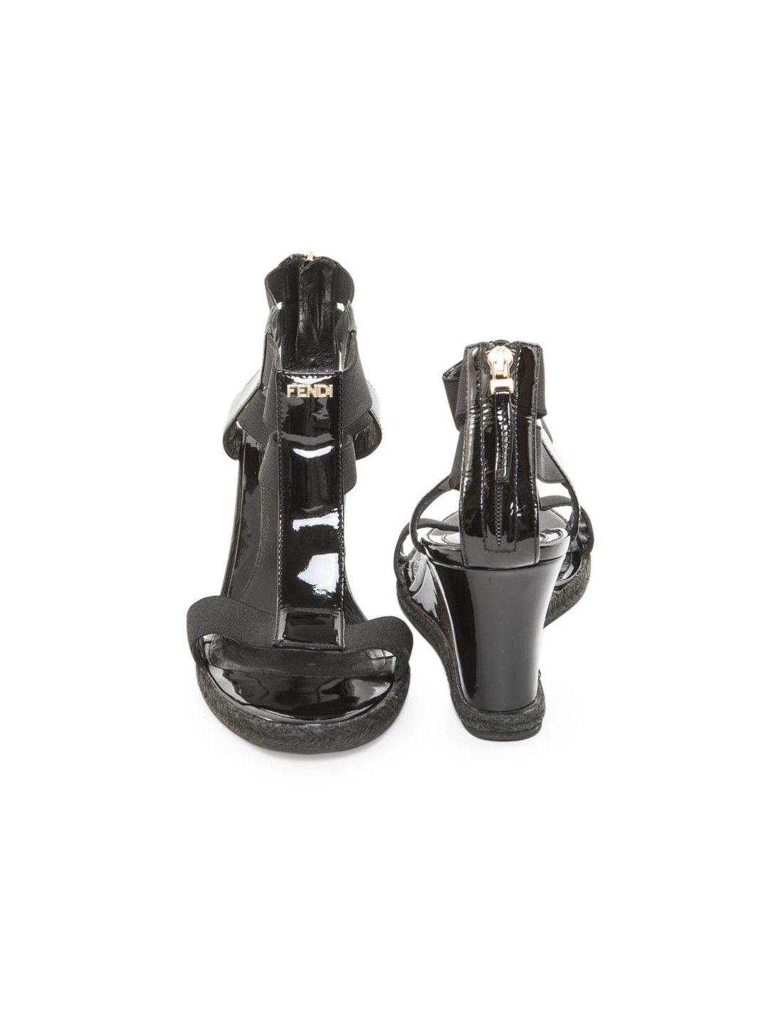 Sandals open house Fendi Black patent leather. Size 39 en. At the level of the ankle ties are elastic. Registration 'FENDI' is gold metal. Zipper on the outside. In very good condition.