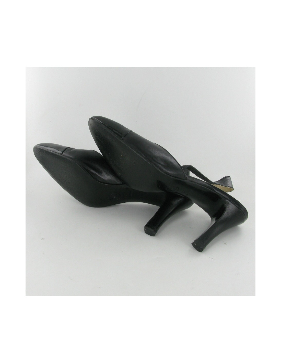 Beautiful pair of shoes T38 CHANEL Black patent leather and black smooth leather. Open to the heel. In very good condition. Worn very little.