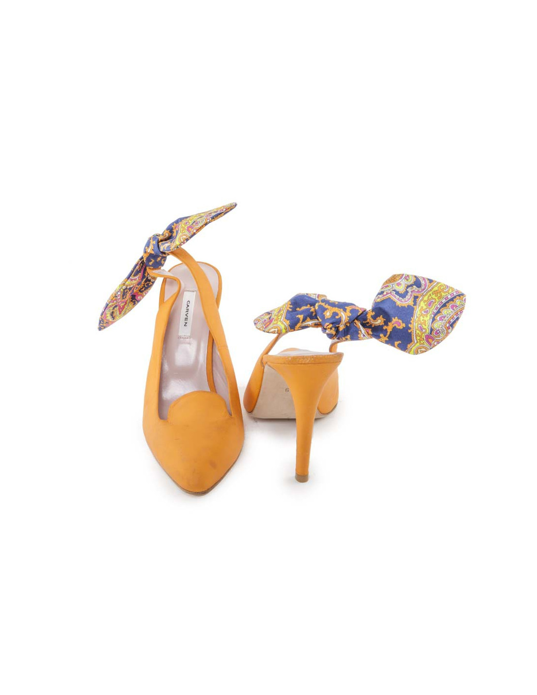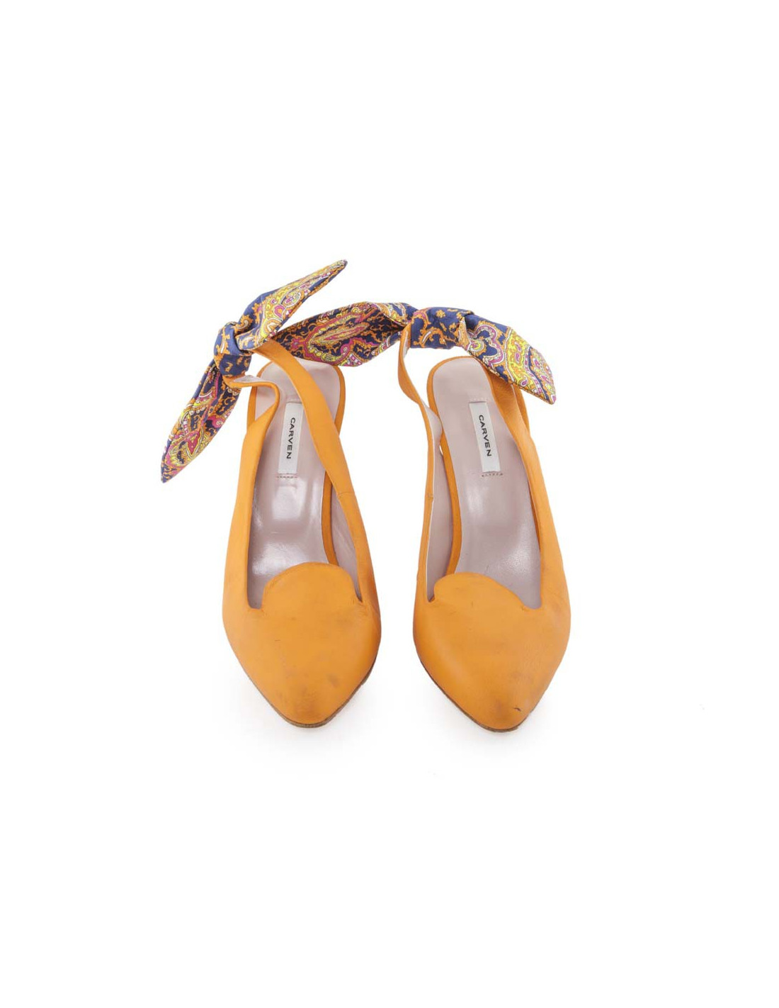 The House of Carven size 39 shoes. Never worn (good condition) but a few spots on the front. See photos. leather effect orange Sweden embellished on the back by a knot scarf multicolor Kashmir.