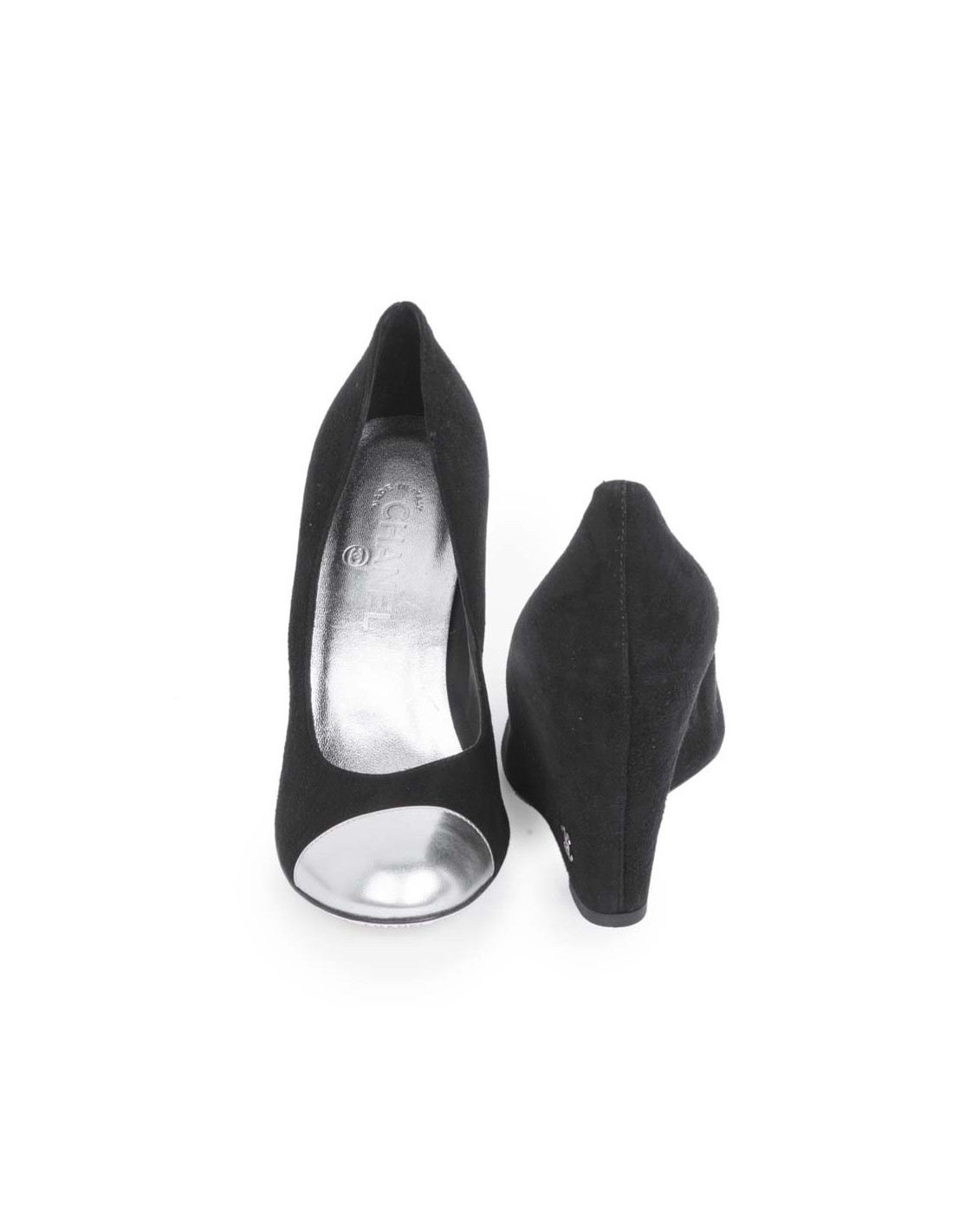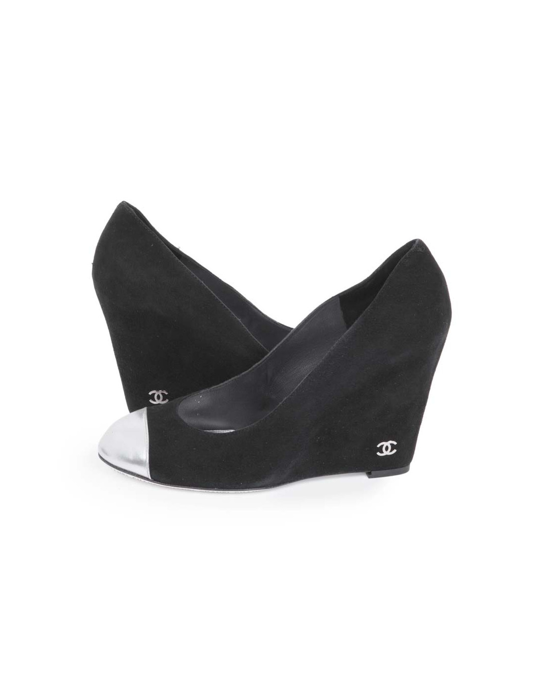 Last items in stock PUMPS - WEDGES Shoes CHANEL T (8.5) 39.5 offset black lamb CHANEL 18563 450.00 € Chanel shoes offset in lamb leather black T 8.5 UK equivalent to a 39.5 FR. In very good condition. the heel height is 8.6 m, the width of the outer sole is 7 cm, the platform height is 1.2 cm. Will be delivered in one box to another. Add to cart