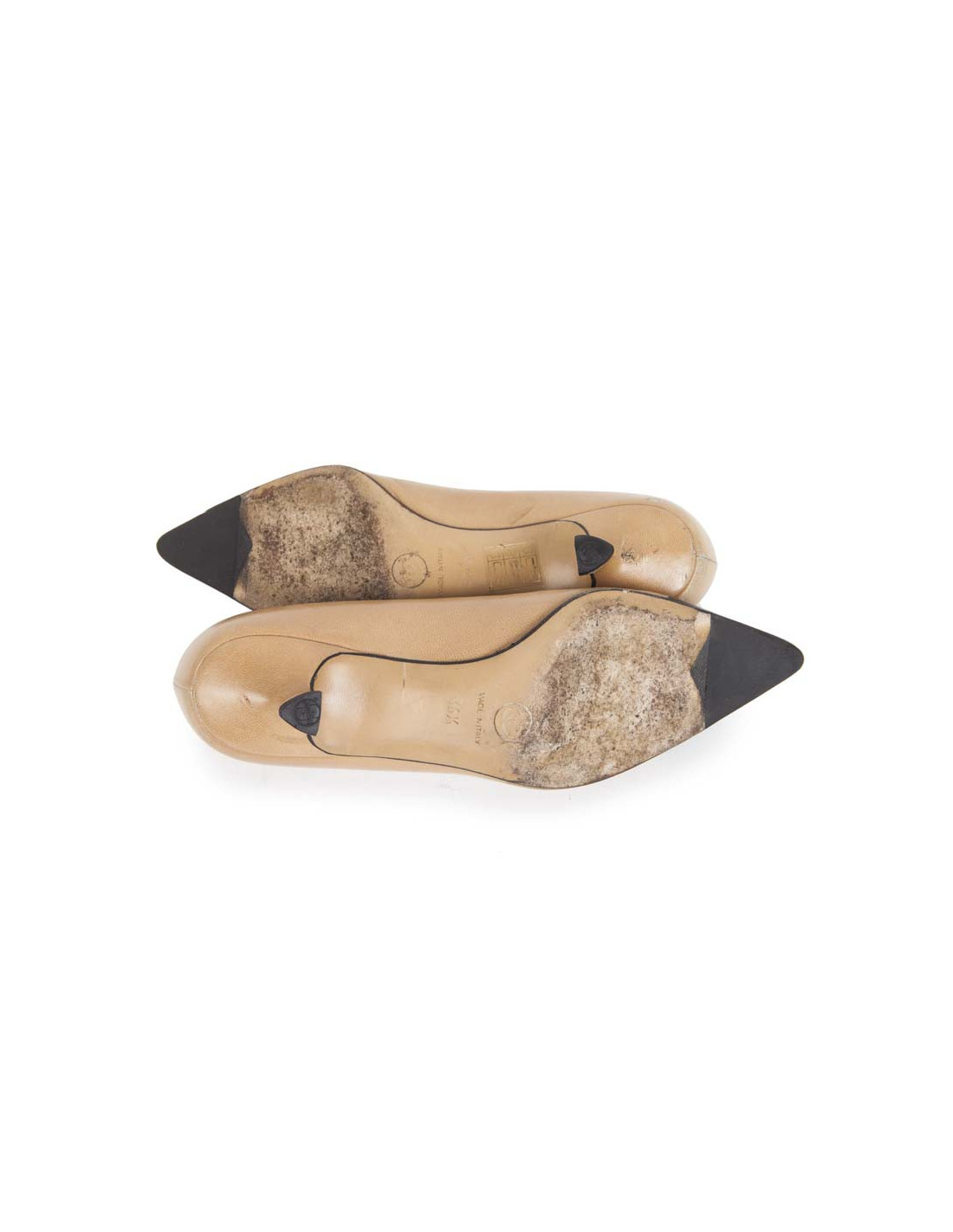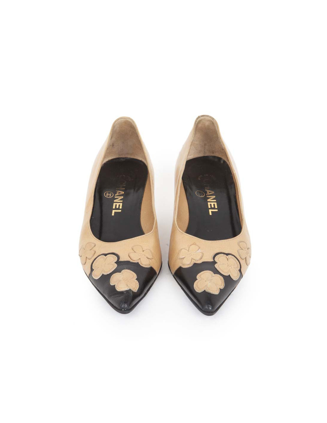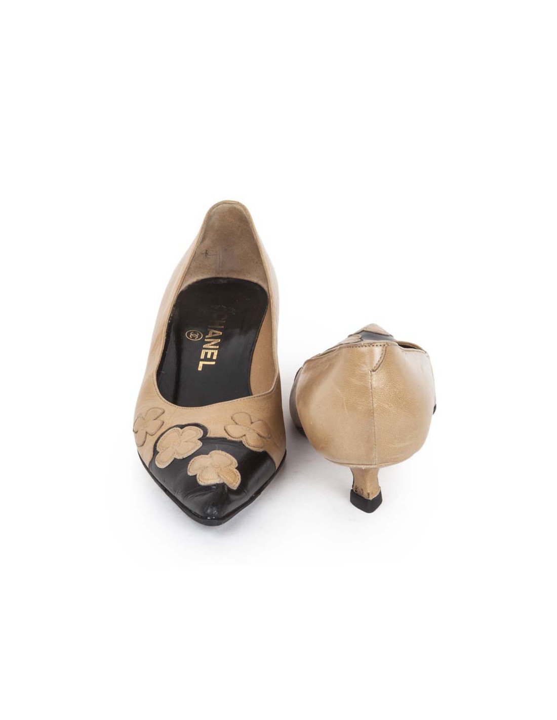 -50.00 € Last items in stock PUMPS - WEDGES Shoes CHANEL T37 in two-tone suede calf leather CHANEL 15382 390.00 € 440.00 € Great classic! CHANEL pumps in Brown two-tone suede and black tip. The outer sole is made of leather. They are in very good condition. Heel height: 10 cm - inner sole length: 25 cm - flange outer width: 7.3 cm. Delivered in a box to another brand. Add to cart