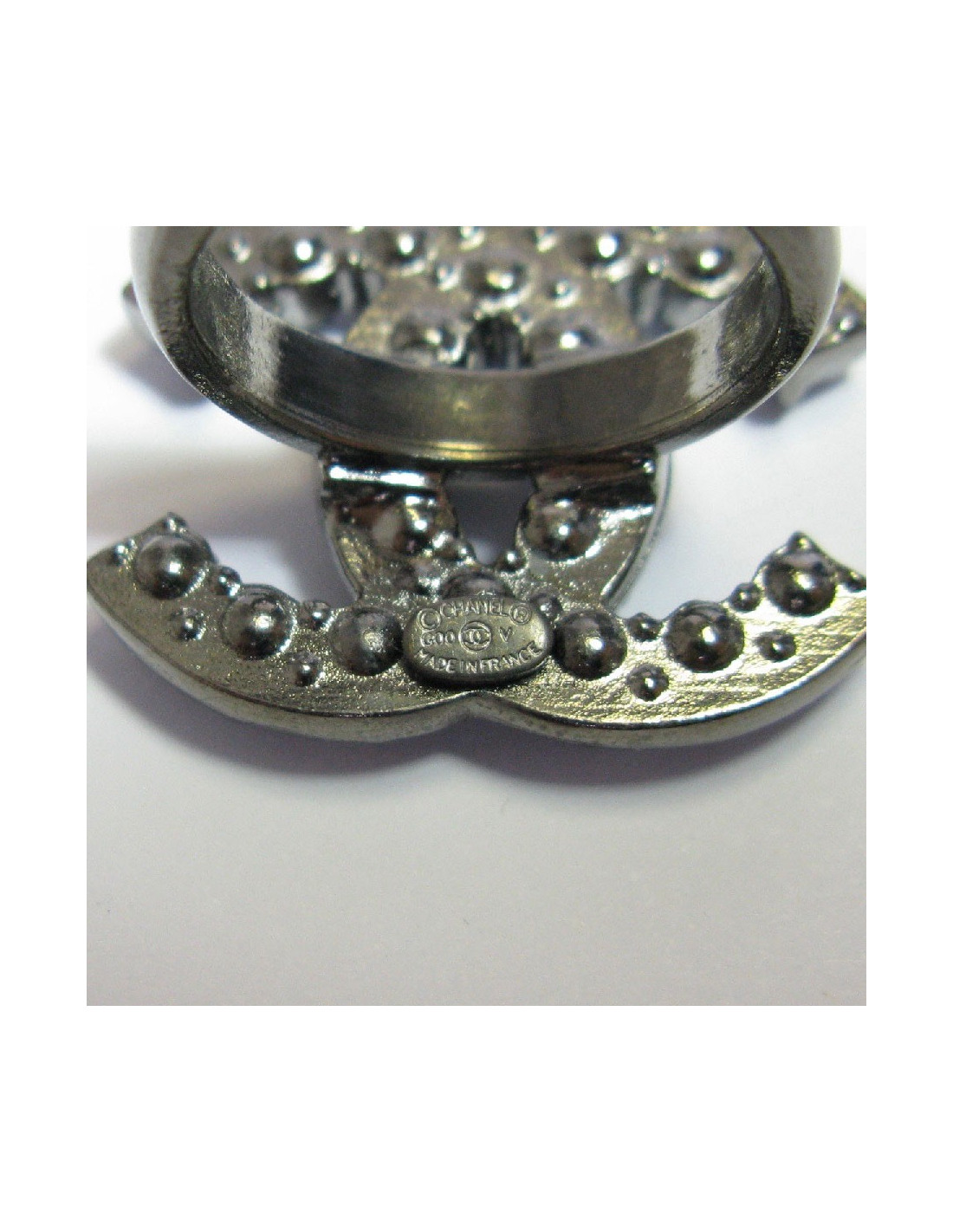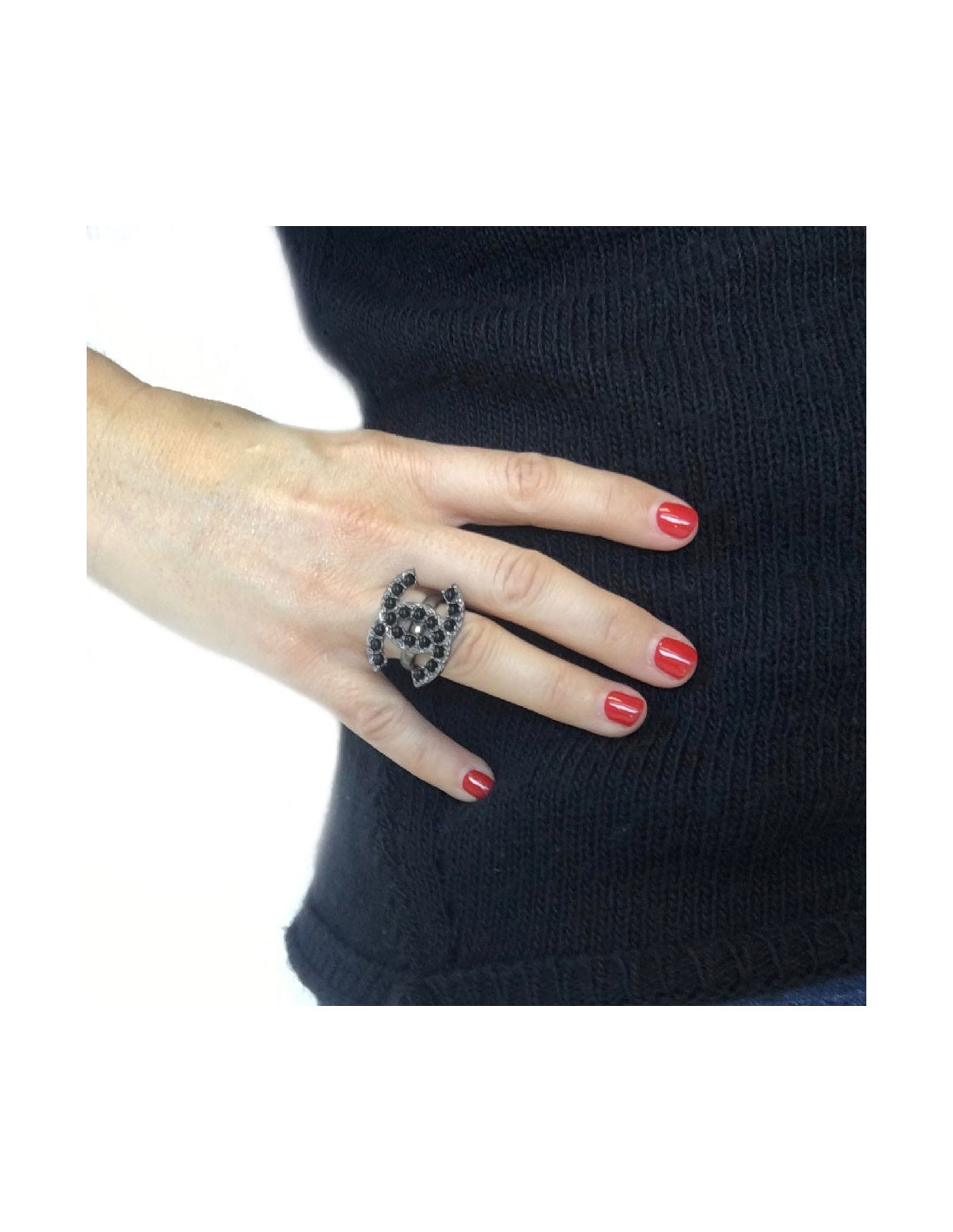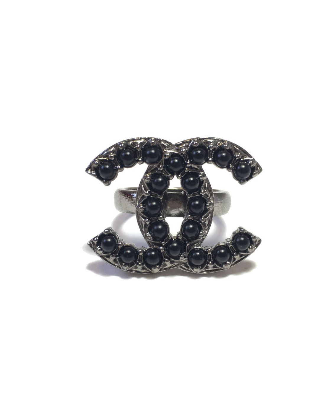CHANEL CC ring in ruthenium and black pearl beads