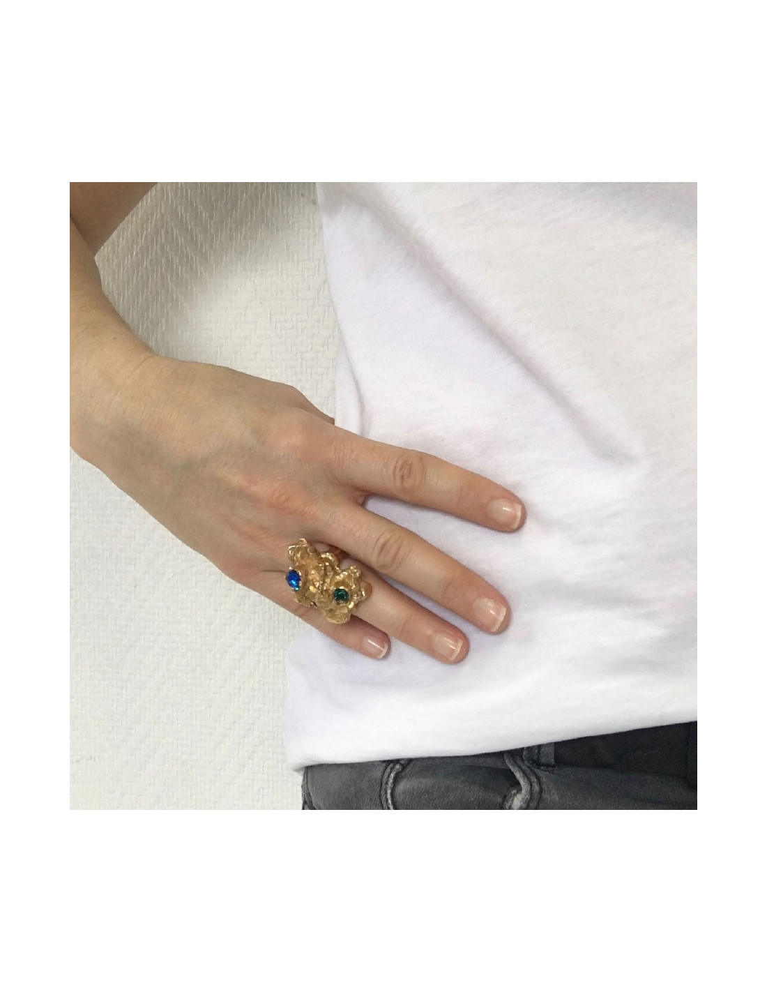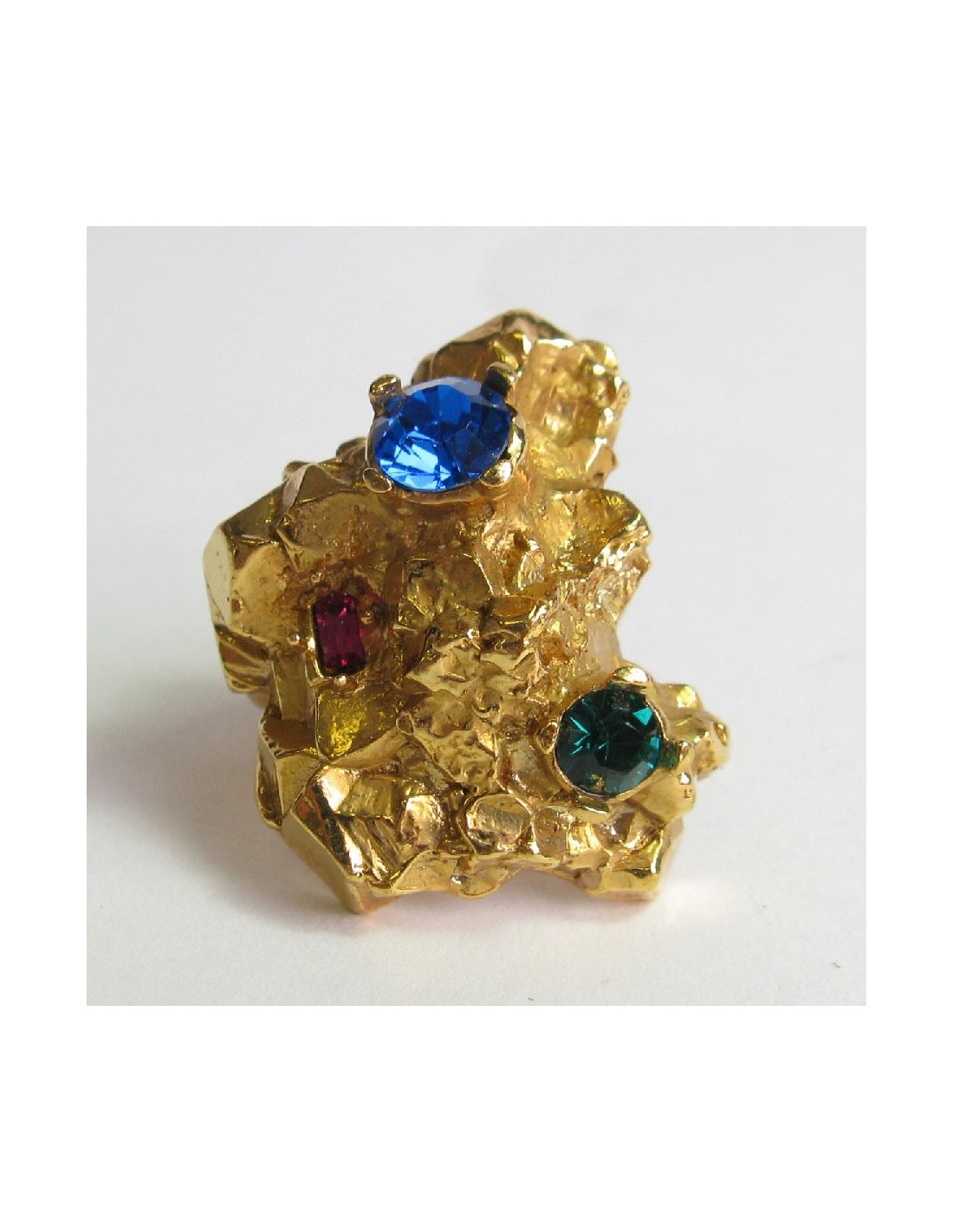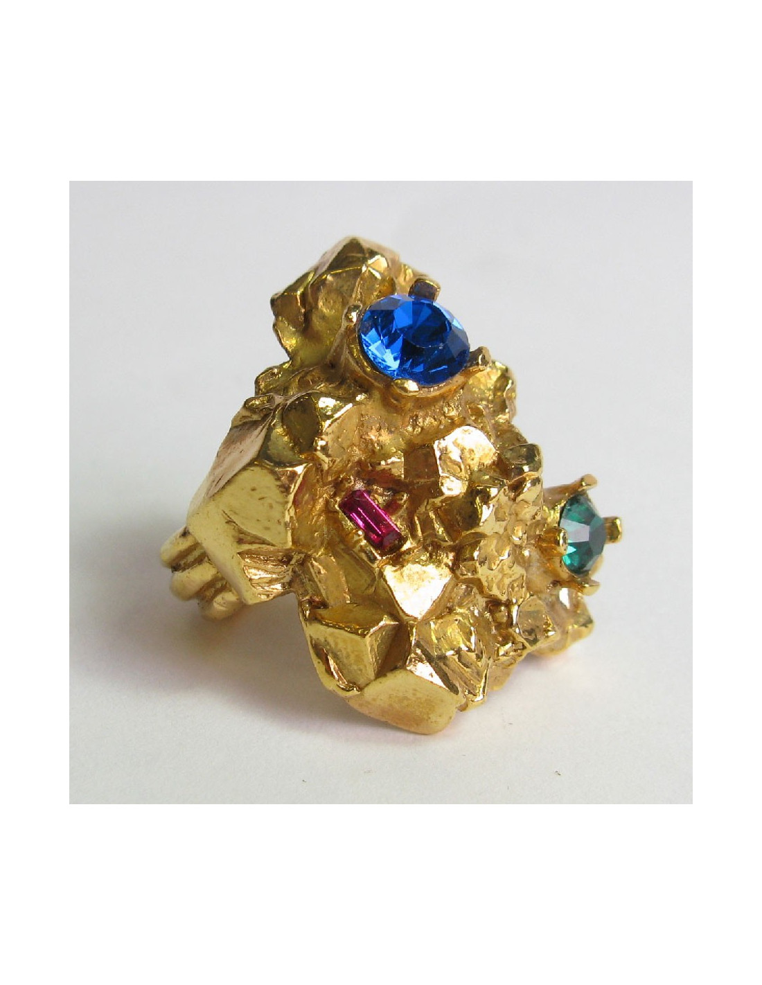 YSL YVES SAINT LAURENT ring in gilt metal and multicolored fantasy stones