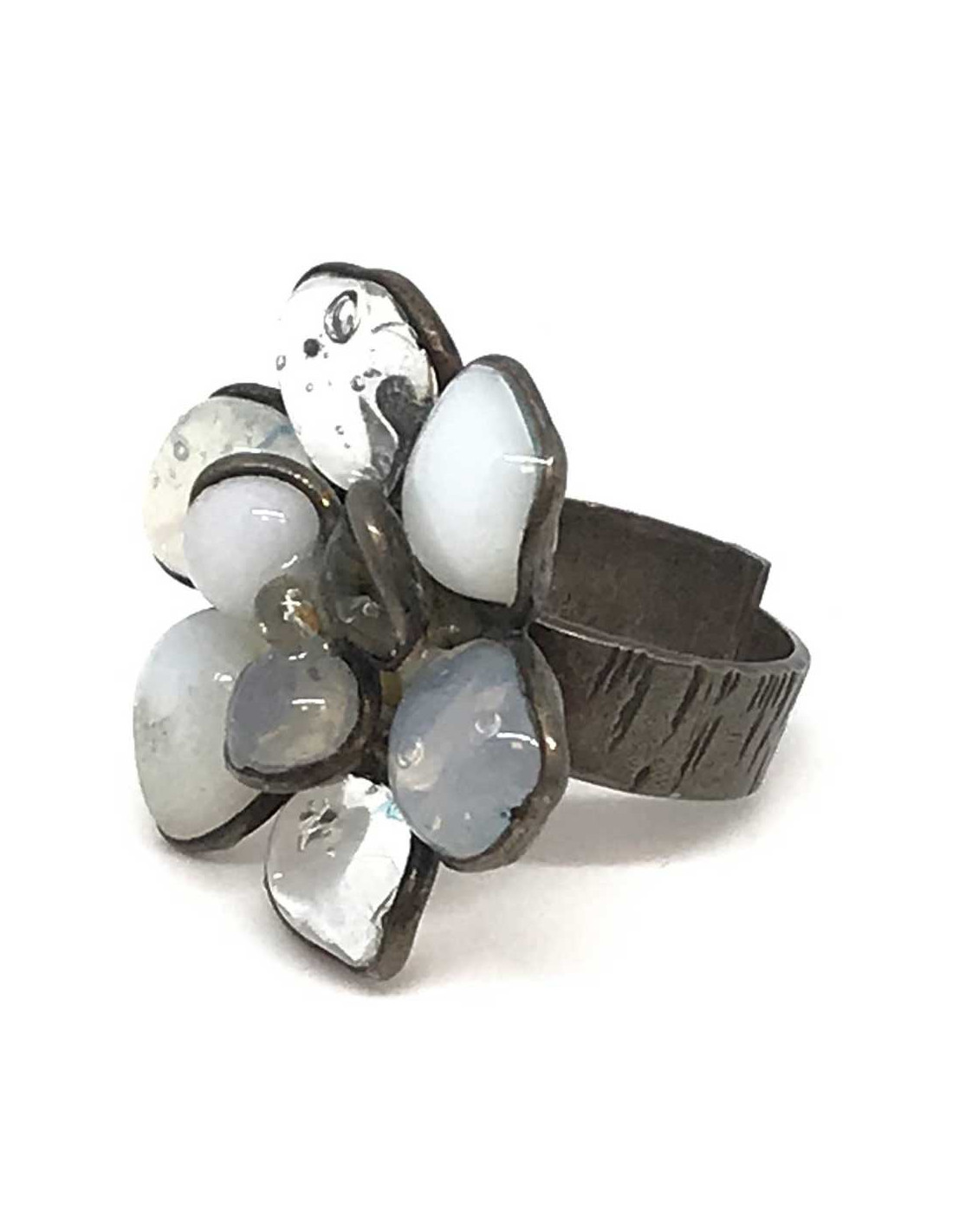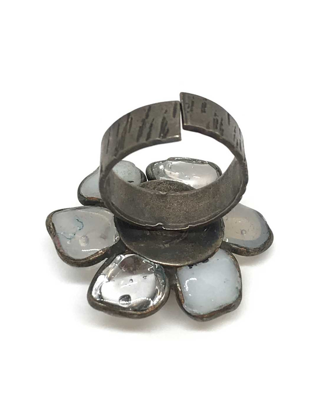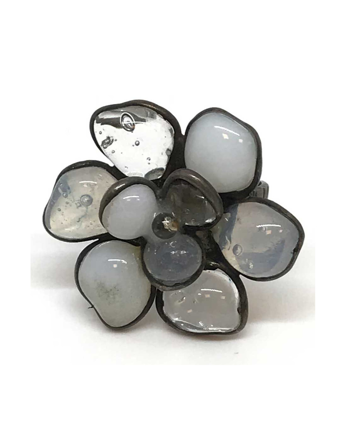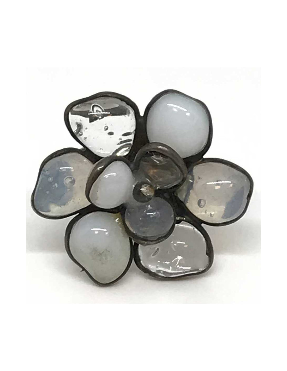 Last items in stock RINGS MARGUERITE DE VALOIS molten glass ring MARGUERITE DE VALOIS 14618 220.00 € MARGUERITE DE VALOIS molten glass ring Made in FranceCondition: very goodMaterials: molten glass, Swarovski crystals, metalColors: silver, anise, lavenderMeasurements: diameter: 3cmSize: one size fits all (adjustable)Details: Marguerite de Valois round ring, composed of four mauve and anise green molten glass and Swarovski rhinestones. Ring in black... Add to cart