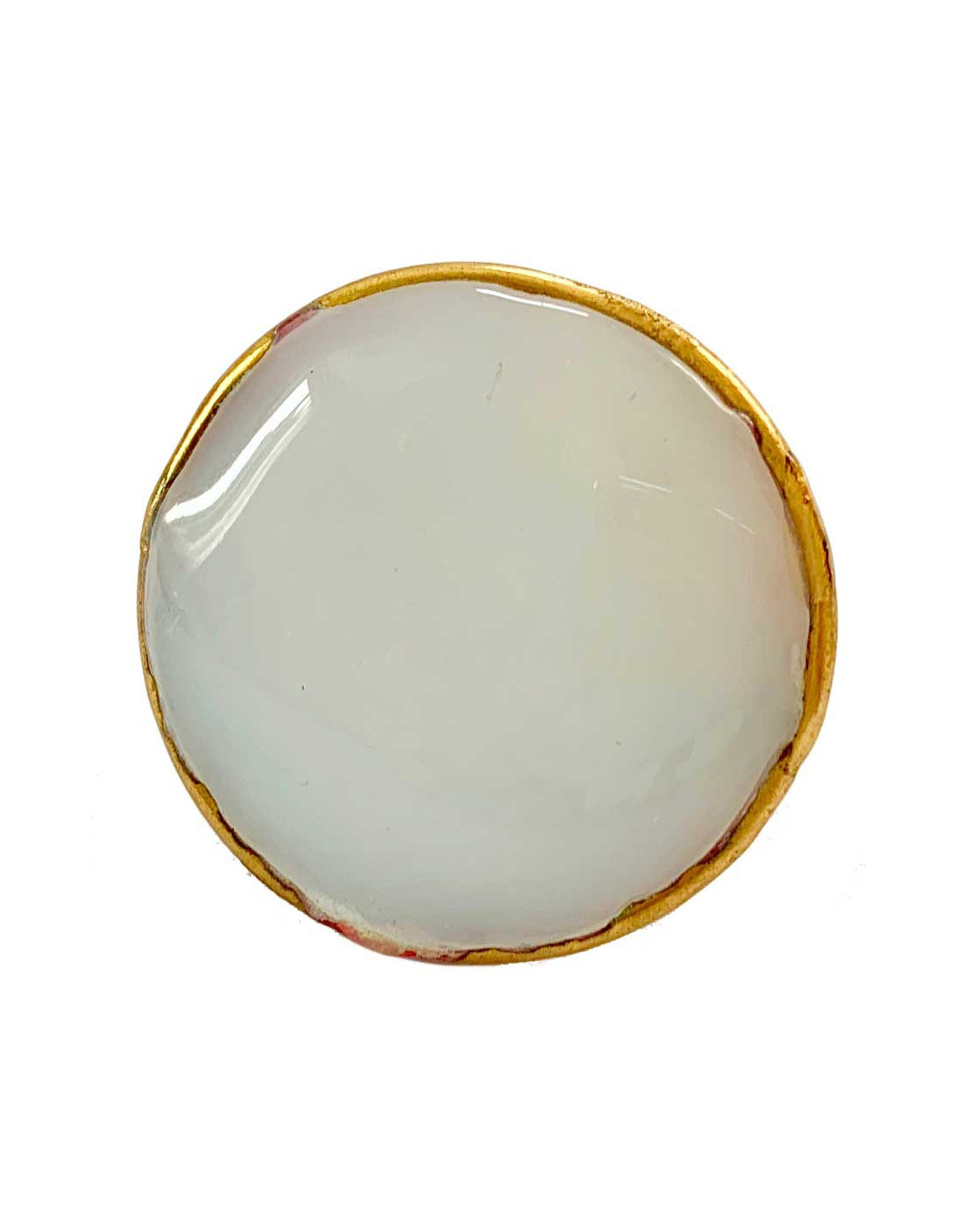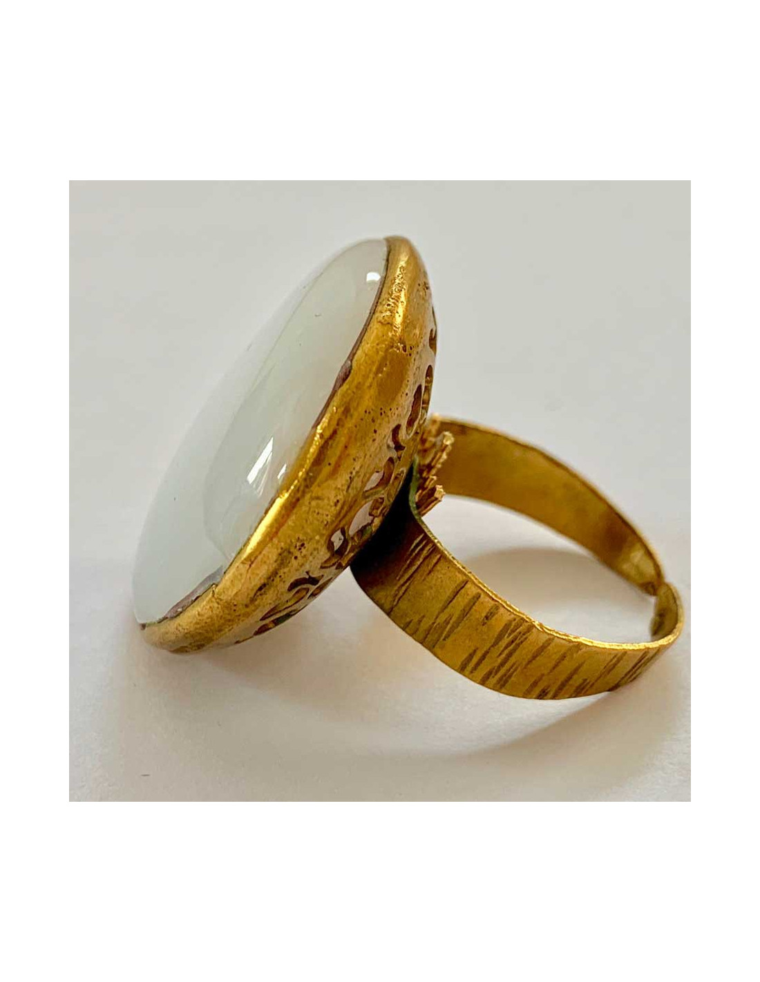 Last items in stock RINGS MARGUERITE DE VALOIS molten glass ring MARGUERITE DE VALOIS 14618 220.00 € MARGUERITE DE VALOIS molten glass ring Made in FranceCondition: very goodMaterials: molten glass, Swarovski crystals, metalColors: silver, anise, lavenderMeasurements: diameter: 3cmSize: one size fits all (adjustable)Details: Marguerite de Valois round ring, composed of four mauve and anise green molten glass and Swarovski rhinestones. Ring in black... Add to cart