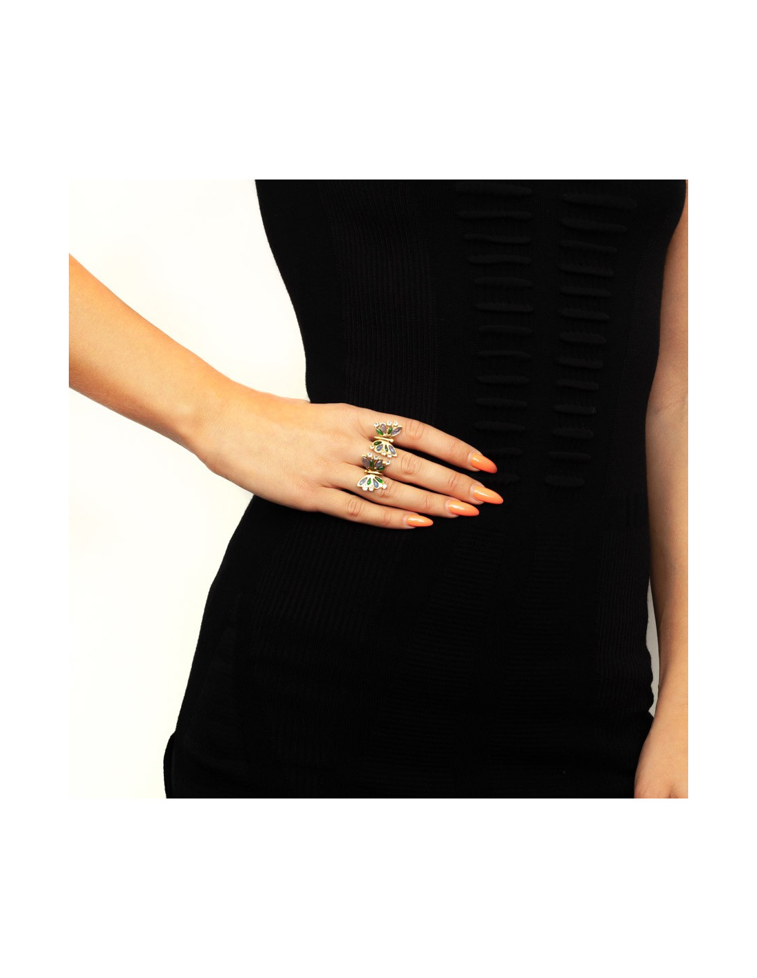 Last items in stock RINGS MARGUERITE DE VALOIS molten glass ring MARGUERITE DE VALOIS 14618 220.00 € MARGUERITE DE VALOIS molten glass ring Made in FranceCondition: very goodMaterials: molten glass, Swarovski crystals, metalColors: silver, anise, lavenderMeasurements: diameter: 3cmSize: one size fits all (adjustable)Details: Marguerite de Valois round ring, composed of four mauve and anise green molten glass and Swarovski rhinestones. Ring in black... Add to cart